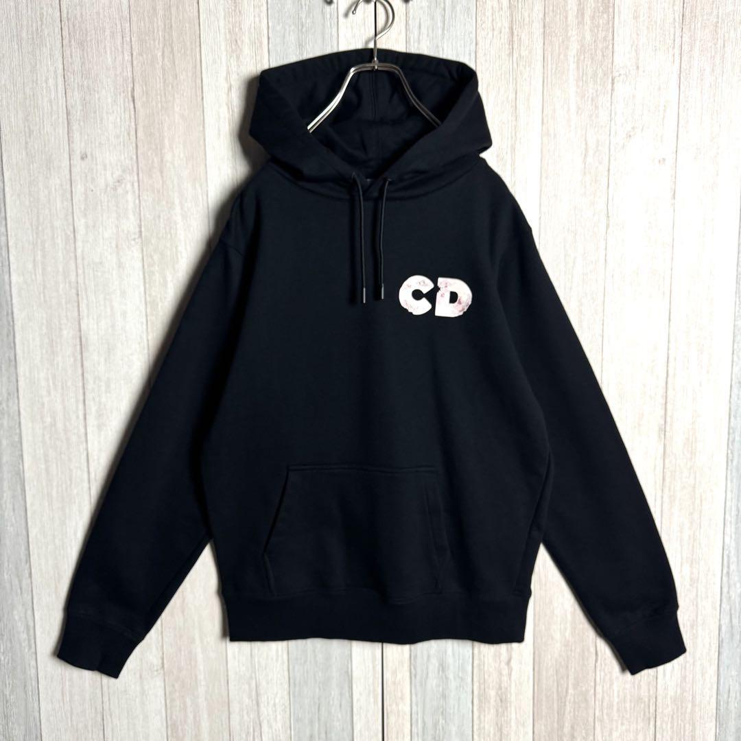 【希少コラボ・美品】イタリア製 DIOR×Daniel Arsham ディオール×ダニエルアーシャム 両面ロゴ スウェット パーカー ブラック 黒 M相当