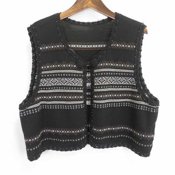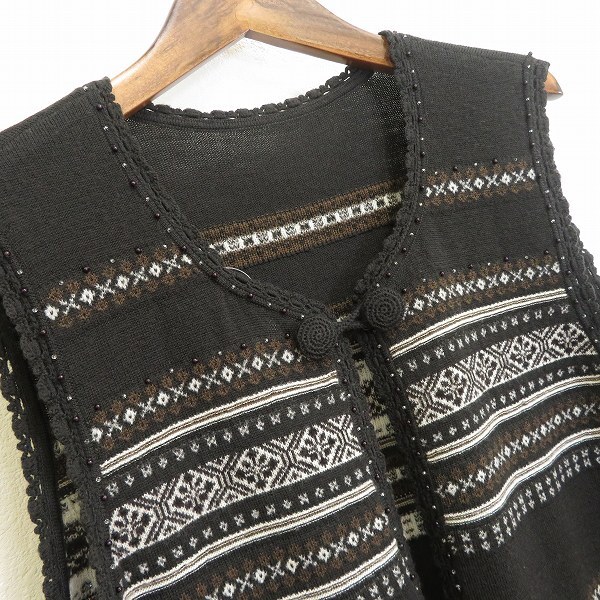 商品説明 | ◎商品名(タイトル):#w レリアン Leilian ベスト 15+ 茶系 白 フェアアイル柄 ニット ビーズ 大きいサイズ 15号 ウール 毛 レディース [963080] k01 |