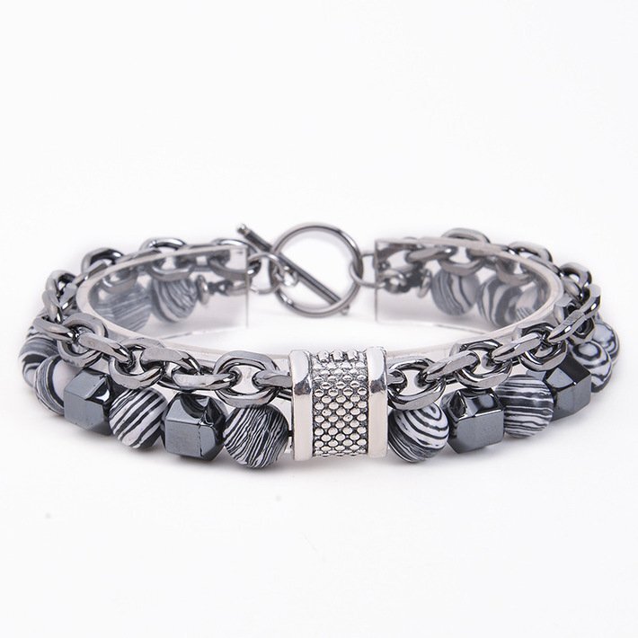 重厚感あるデザインながらも、天然石の美しい模様が手元に個性を与えます。
