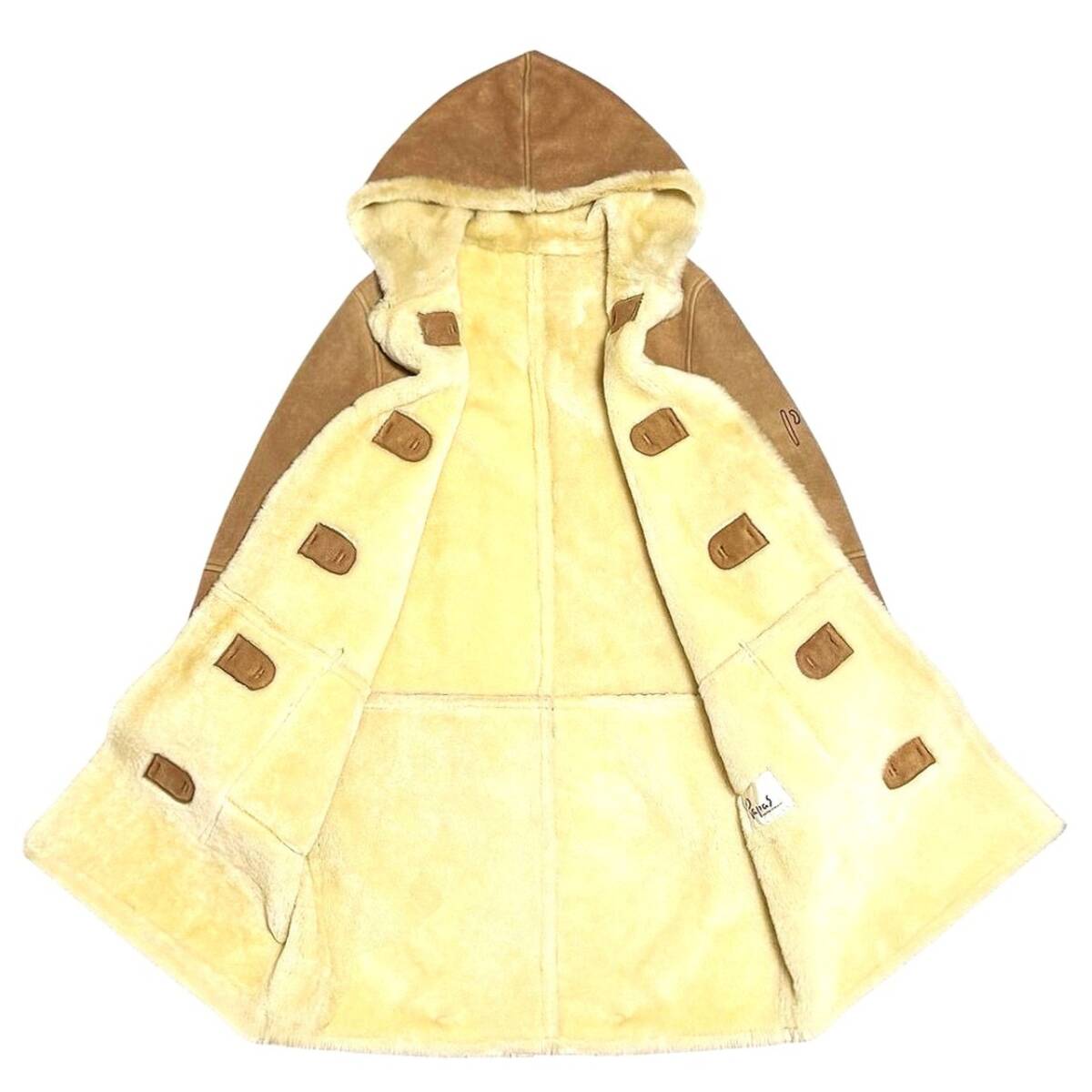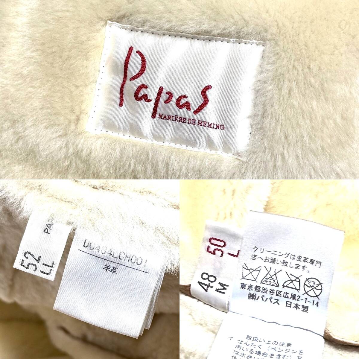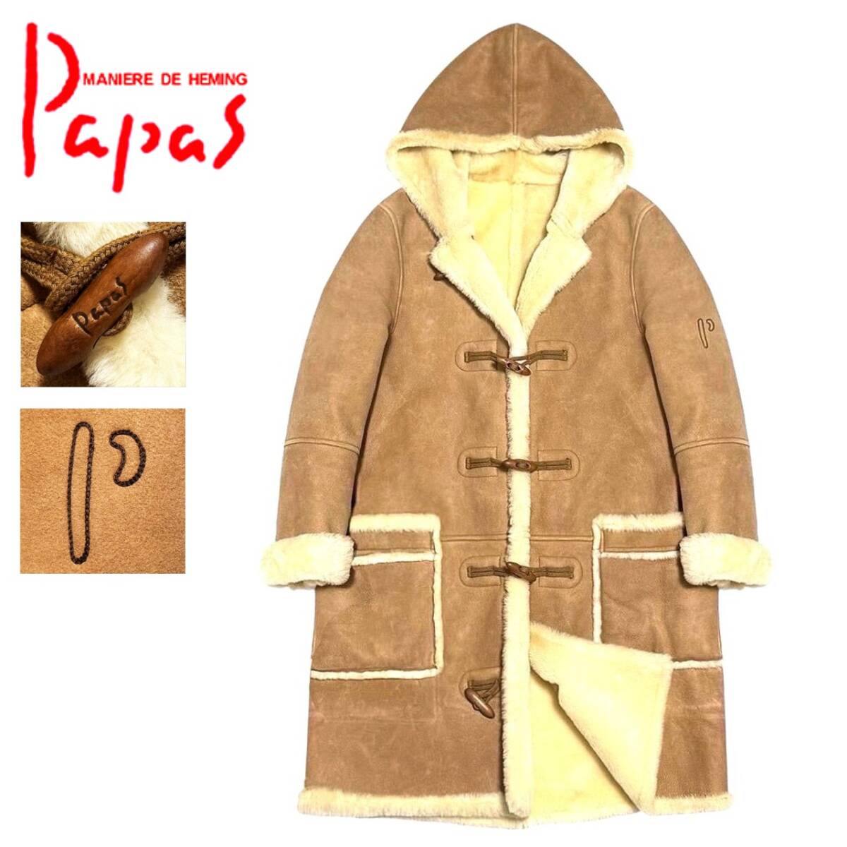 | 商品説明 | 【商品】 希少 贅の極! 極美品 定価50万 Papas パパス Pロゴ刺繍 最高級羊革 極上リアルムートン 総裏 ロング丈 ムートンダッフルコート 50/L 日本製 【商品説明】 Papas(パパス)のPロゴ刺繍 最高級羊革 極上リアルムートン 総裏 ロング丈 ムートンダッフルコートになります。 (株)パパスの内タグが付属する国内正規品になります。 デザイナー荒牧太郎の生き方や個性が表現された何時の時代も変わる事無く私達に素敵なアパレルを提供してくれる唯一無二のブランド『パパス』。 パパスの最高峰リアルムートンダッフルコートです。 定番のランチコートとは一味違った雰囲気を漂わす本格的なトグルボタン開閉のダッフルコートデザイン、リアルムートンならではの優れた保温性と高い耐久性を備え、トレンドなどに囚われない力強い凛としたスタイルを実現している高級感のある逸品です。 原料からハイレベルな品質管理の下で作られる生地は上品な手触り、風合いがあり、最高級クラスの逸品です。 折り畳んでも全くシワにならず、しなやかで柔らかな最上級のモチモチの肌触りが特徴の最高品質の極上ラムレザー(羊革)が使用され、内側にはふかふかのシェアードムートンがびっしりと敷き詰められた防寒性抜群の高級感溢れる極上の一着。 2枚の革を張り合わせた安価なものではなく、表革と裏革が一枚革となった、高級品の証である「ダブルフェイス」仕様となっています。 ムートンのジャケットやコートは大変高価なアイテムとして市場に出回っており、しっかりとした厚みがあるにもかかわらず、たいへんやわらかく、モチッとした弾力があることが、クオリティーの高さを物語っています。 驚くほど柔らかくソフトな肌触りを堪能して頂ける最高級のリアルムートン(羊革)で仕立てられた極上の一着で、レザーアイテム特有の硬さがありませんのでストレス無く着用して頂けます。 メイドインジャパンならではの確かな縫製、丁寧になめされた羊革の質感はもちろん、艶やかな毛並みや優しい温もりは、いちど着たらやみつきになるほどです。 パパスらしい空気を含んだかのようなゆったりとしつつ、無駄を省いた美しいシルエットに仕立てられていますので、ムートンコートにありがちな着膨れもなく、ブランドイメージ通りのスタイリッシュな着こなしを表現して頂けます。 現代的にモディファイされたムートンコートは、カジュアルでありながらもラグジュアリーでスタイリッシュ、そのうえ軽くて暖かく、ひと目で高級感が伝わる¨大人が着るに相応しいムートンコート¨です。 非常に洗練されたディテールが魅力となったパパスならではの完成度の高い大人カジュアルな逸品です。 左袖には目を惹くブランドアイコンの『Pロゴ』刺繍があしらわれたパパスらしいお洒落且つこなれたデザインに、上質なマテリアルの表情がプラスされることにより、圧倒的な存在感と風格あるラグジュアリー感を放つアイテムに昇華されています。 スタイリッシュにもカジュアルにもスタイリングが出来る万能デザイン&シルエットで幅広いコーディネートが楽しめる一着です。 ロング丈のシンプルなデザインはスーツやジャケットの上からはもちろん、ジャケット感覚でオフのコーディネイトに合わせたスタイリングもおすすめです。 固くなり過ぎずカジュアルにも着こなして頂け、無駄のないシンプルなアイテムですので末永く愛用していただけると思います。 あまりムートンジャケットやコートを着用されない方でも使いやすいデザインです。 フロントは5つのトグルボタン開閉の比翼仕立て、フロントにハンドウォーマーポケットが2つ、袖口はお好きな丈に折り返して調整が可能。 左袖には目を惹くブランドアイコンの『Pロゴ』刺繍、トグルボタンにはブランドロゴの刻印があしらわれており、ブランドをしっかりと主張した特徴的なデザインで、存在感のある着こなしを楽しめます。 素材・デザイン・シルエットの全てにこだわり抜かれた、さすがパパス!と唸らされるクオリティーの高い仕上がりとなっています。 肌触りも素晴らしいふかふかのリアルムートンの総裏仕立て仕様、リッチ感溢れる素晴らしいムートンコートです。 デザイン面は勿論ですが、特筆すべきはその保温性。 内側には袖裏までシェアリングされたふかふかと柔らかな最高級のムートンが敷き詰められ、極限の寒さでも体温に包まれているような暖かさを維持します。 高い防風性・防寒性を誇り、どこに行っても上半身は寒さを感じることはありません。 抜群の保温性を誇りながら、美しいシルエットラインを描くその技術力はさすが「パパス」。 防寒保温性に優れ、秋冬シーズンのメインアウターとして重宝する一着。 リアルムートンによる高級感、洗練されたデザイン性・シルエット・ディティールは一切妥協の無い完成度の高い仕上がりの一着ですので、ワンランク上のラグジュアリーな大人のコーディネートが完成致