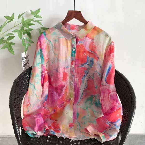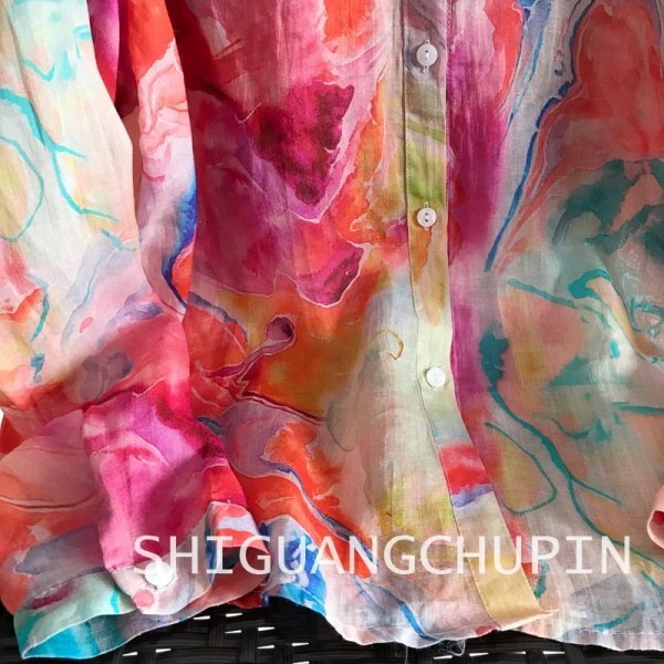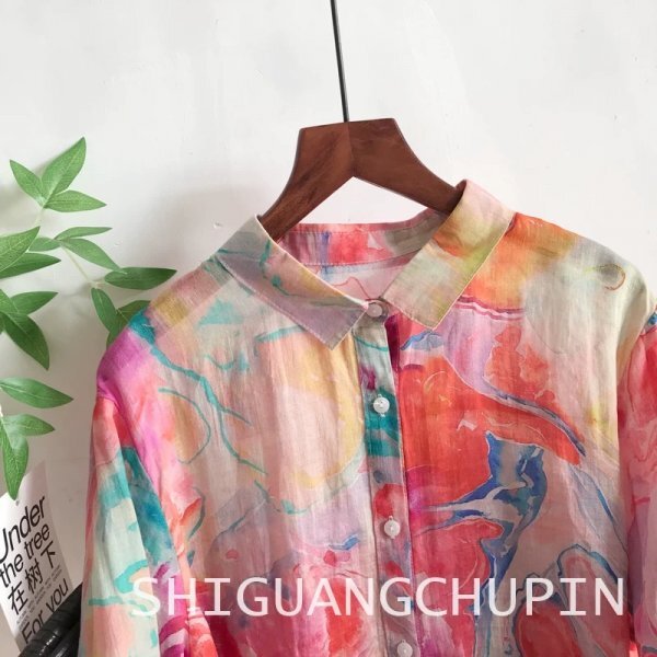 yq 2502 チュニック ワイシャツ 綿100% コットン ゆったり プリント花柄 オシャレ フリーサイズ ナチュラル 柄11