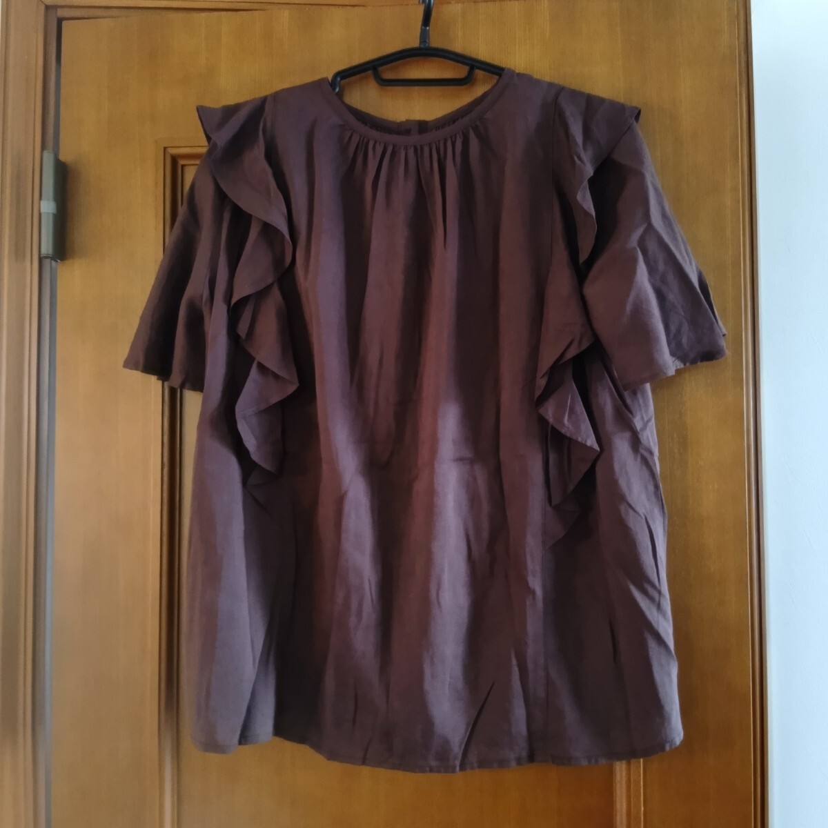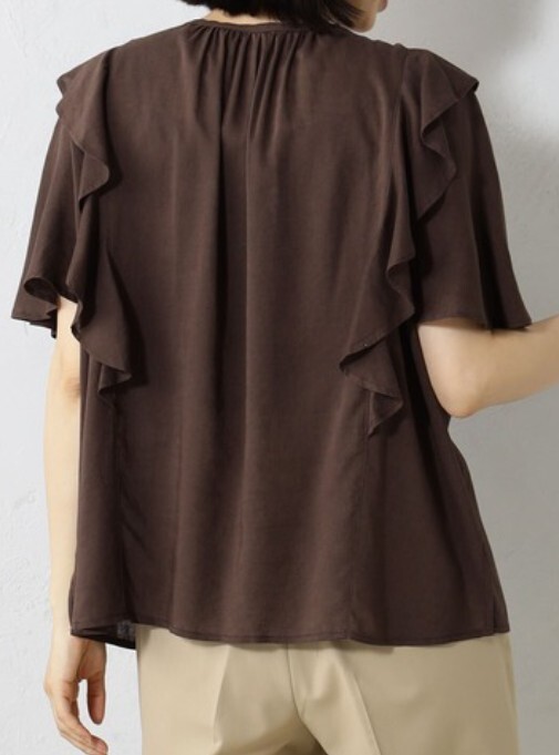 ボタンのある表側とボタンなしの背面裏側、リバーシブルでどちらでもお使いできてるお洋服です。フリルの袖元も可愛くかなり重宝するお品かと思います。