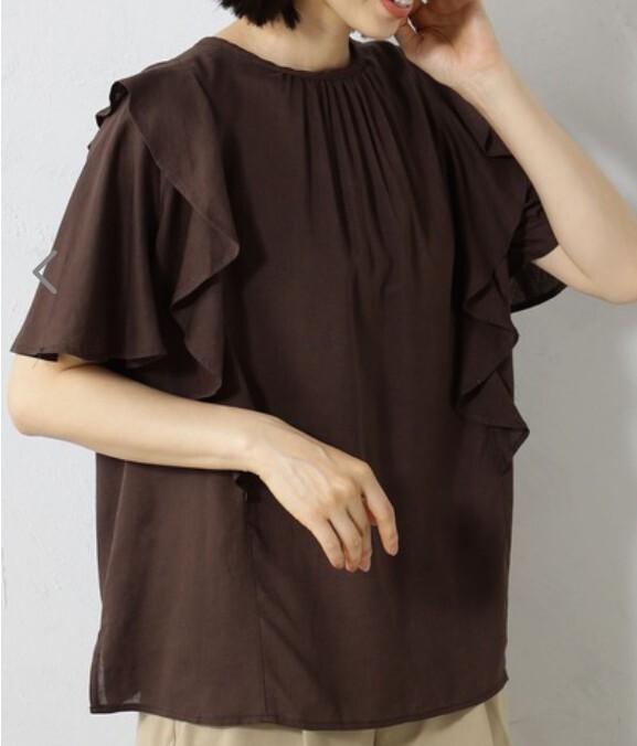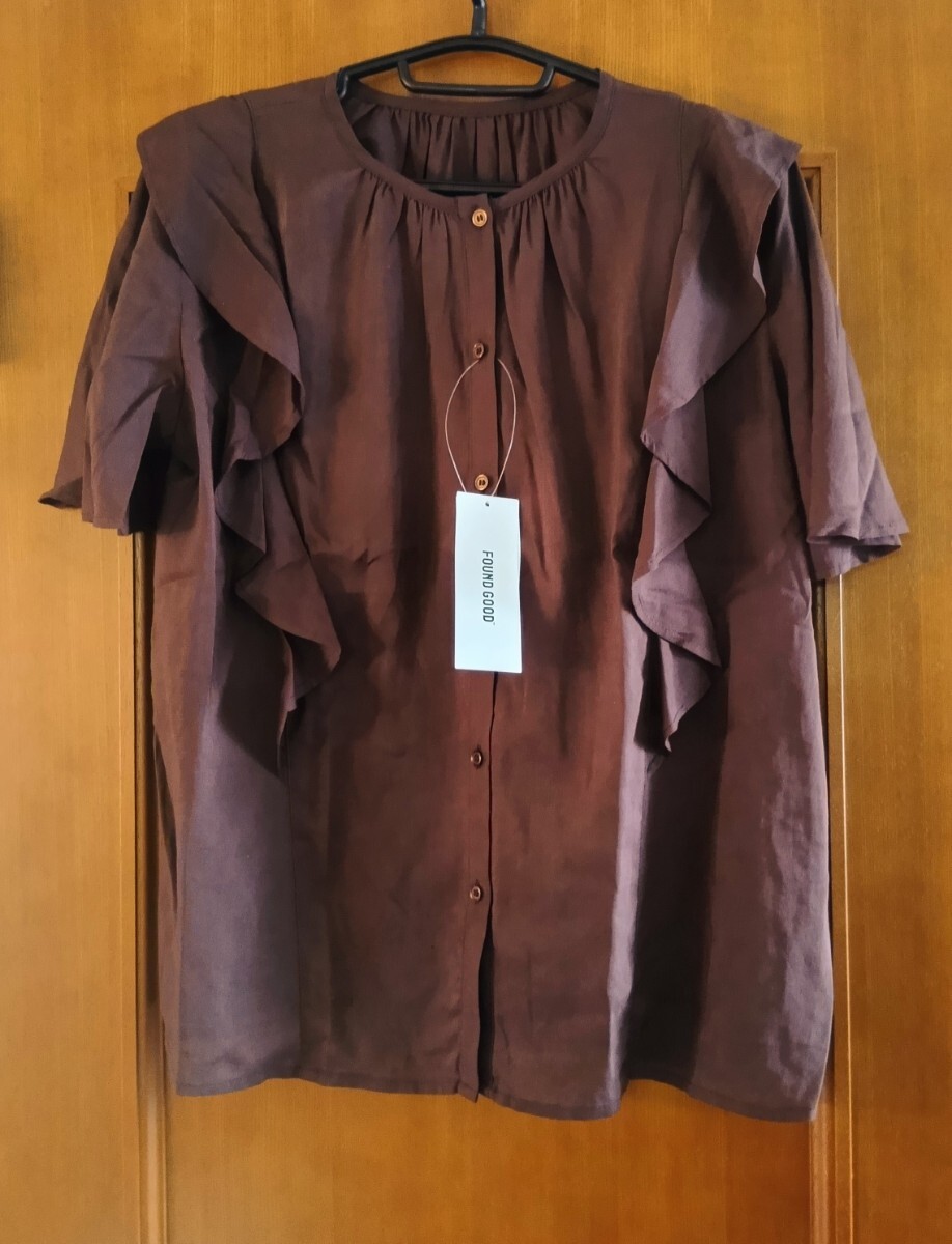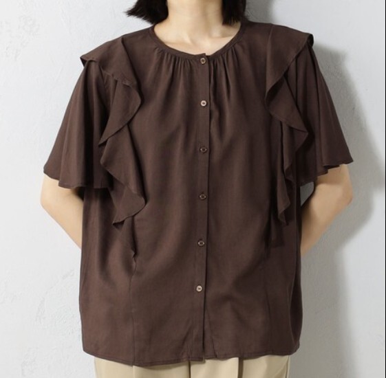 FOUND GOOD 2WAY麻混フリルブラウス シャツ ピンク ファウンドグッド