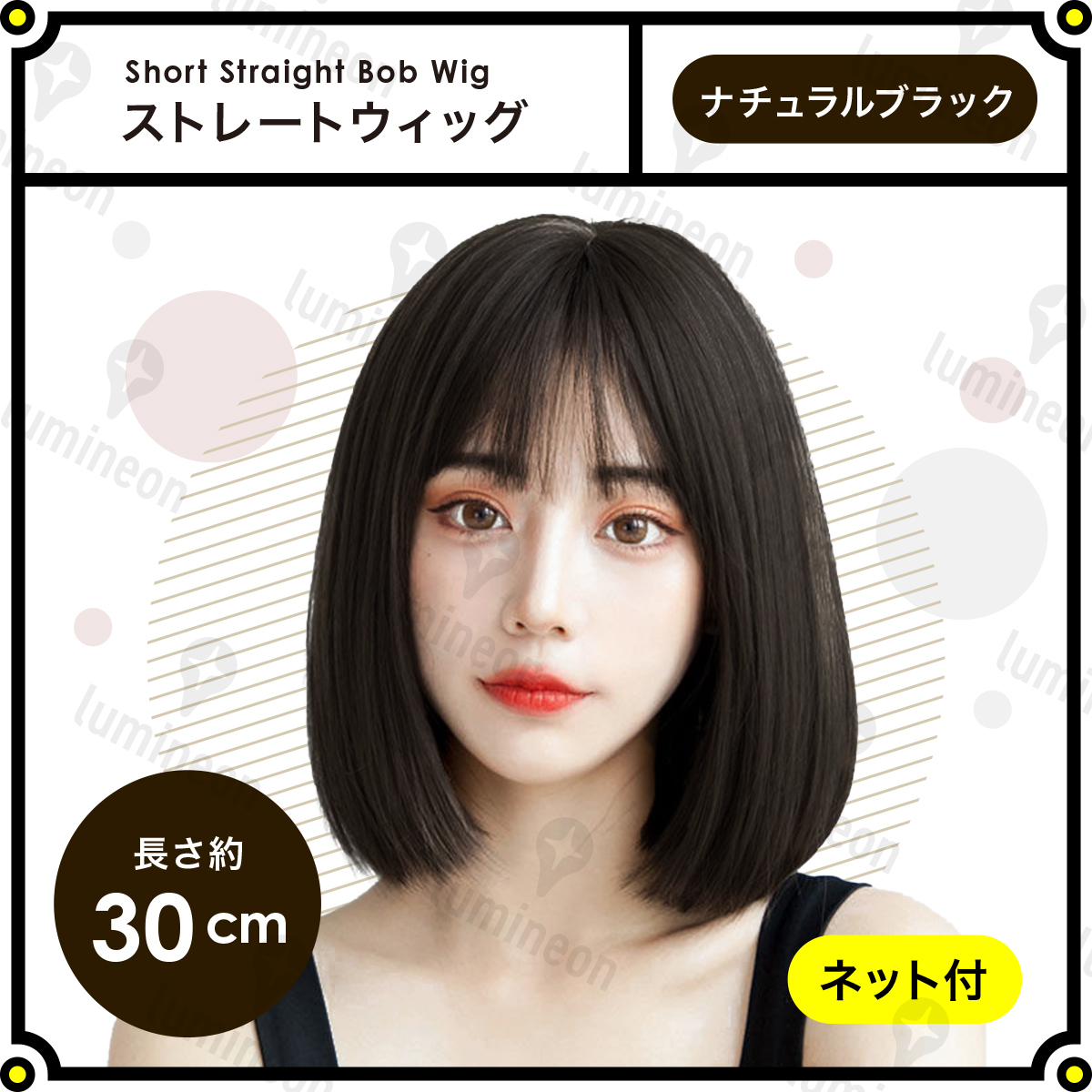 ウィッグ フル ストレート ショート ボブ ナチュラルブラック 黒髪 女性用 レディース 自然 おしゃれ用 かわいい 人毛のような質感 g197c