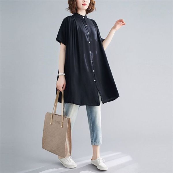 新品 チュニック シャツワンピース ロングシャツ レディース 半袖 春 夏 チュニックシャツ 大きいサイズ 無地 おしゃれ ロングワンピー Aライン