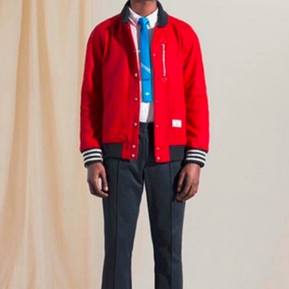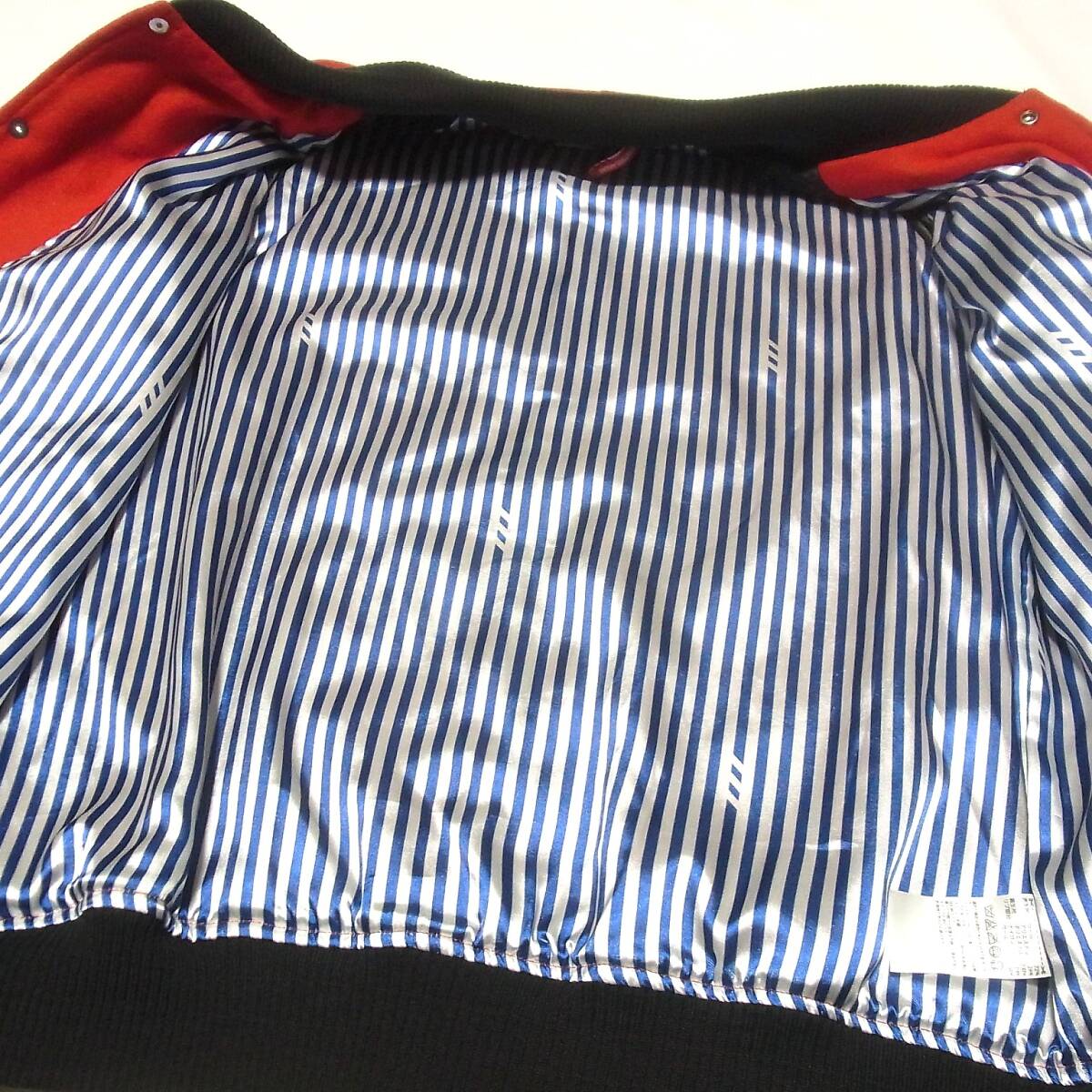 発色のよいレッド色とカジュアルなリブ仕様のスタジャン風デザインです。