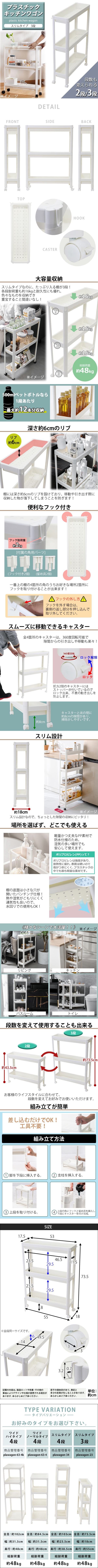 | 商品名 | 送料無料 ワゴン キッチンワゴン プラスチック キャスター 約18×55×73.5cm 段数変更 2段 3段 スリムタイプ プラスチックワゴン テーブルワゴン 収納ワゴン 総耐荷重約48kg スリム フック 収納ラック 隙間 キッチン キッチン収納 洗面所 リビング トイレ 風呂 plawagon23 |