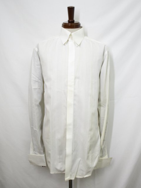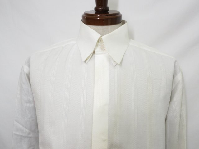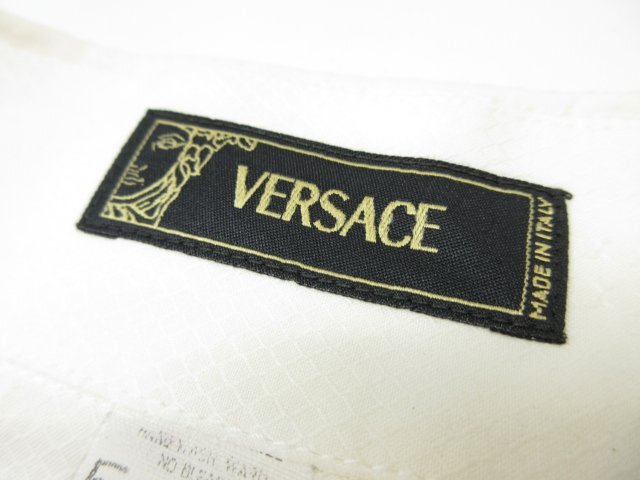 【VERSACE ヴェルサーチ】 織柄 隠しボタンダウン 比翼ボタン 長袖シャツ (メンズ) size50 オフホワイト イタリア製 ◇33MK6062◇
