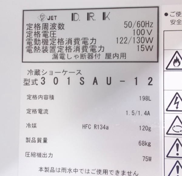 ダイワ 冷蔵ショーケース 301SAU-12 800×450×1200 中古厨房/25J0602Z