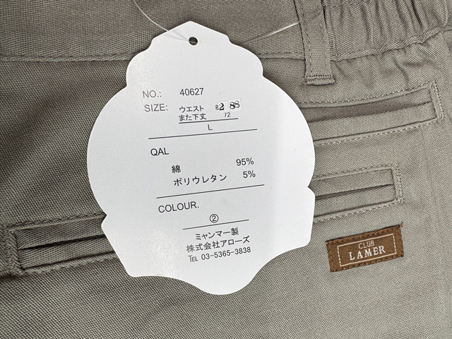 40627-2-nb488■ウエスト82-88cm 股下72cm■チノパンツ■CLUB LAMER 脇シャーリング ストレッチ