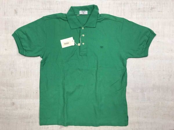 訳あり新品 ヴァレンティノ VALENTINO オールド レトロ ロゴ刺繍 半袖ポロシャツ メンズ コットン100% スペアボタン1個有 L 緑 です。