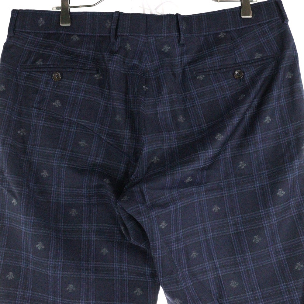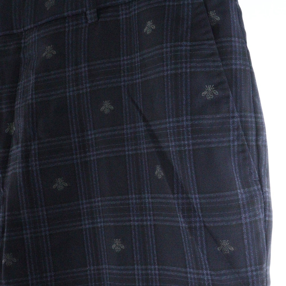 GUCCI グッチ Bee Check Pants チェックパンツ ウールスラックス ネイビー 529010 Z551J