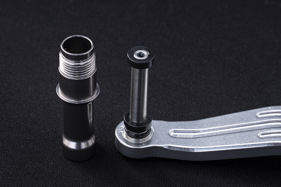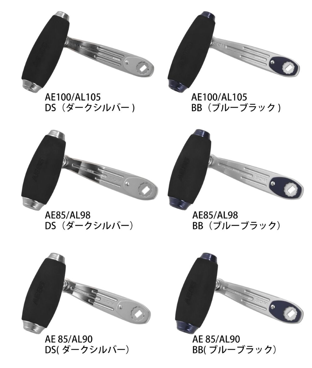 ブルーヘブンシリーズに採用しているAEノブとアルミアームを大型 - 中型ベイトリールに装着可能。