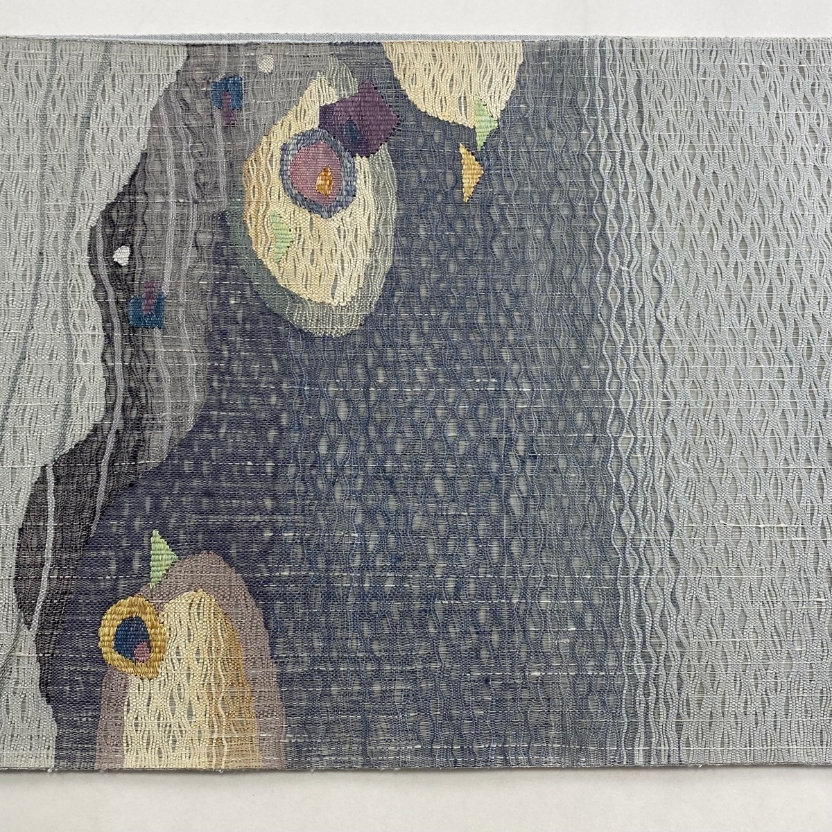 袋帯 美品 秀品 幾何学 金銀糸 青灰色 お太鼓柄 正絹 【中古】 |