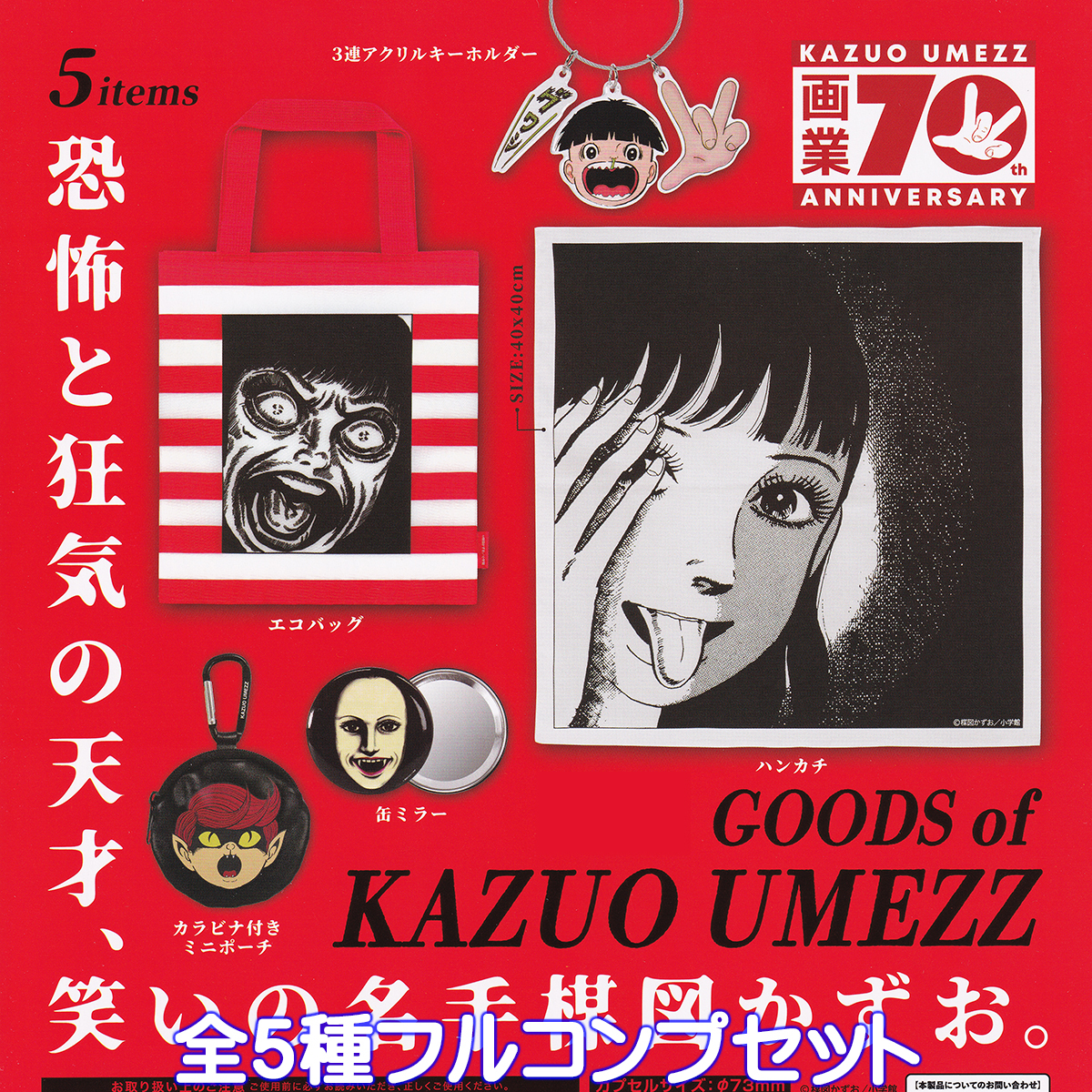 ホラー漫画の巨匠、恐怖と狂気の天才、笑いの名手、楳図かずお先生の画業70周年を記念のカプセルトイコレクションアイテムが新登場です。