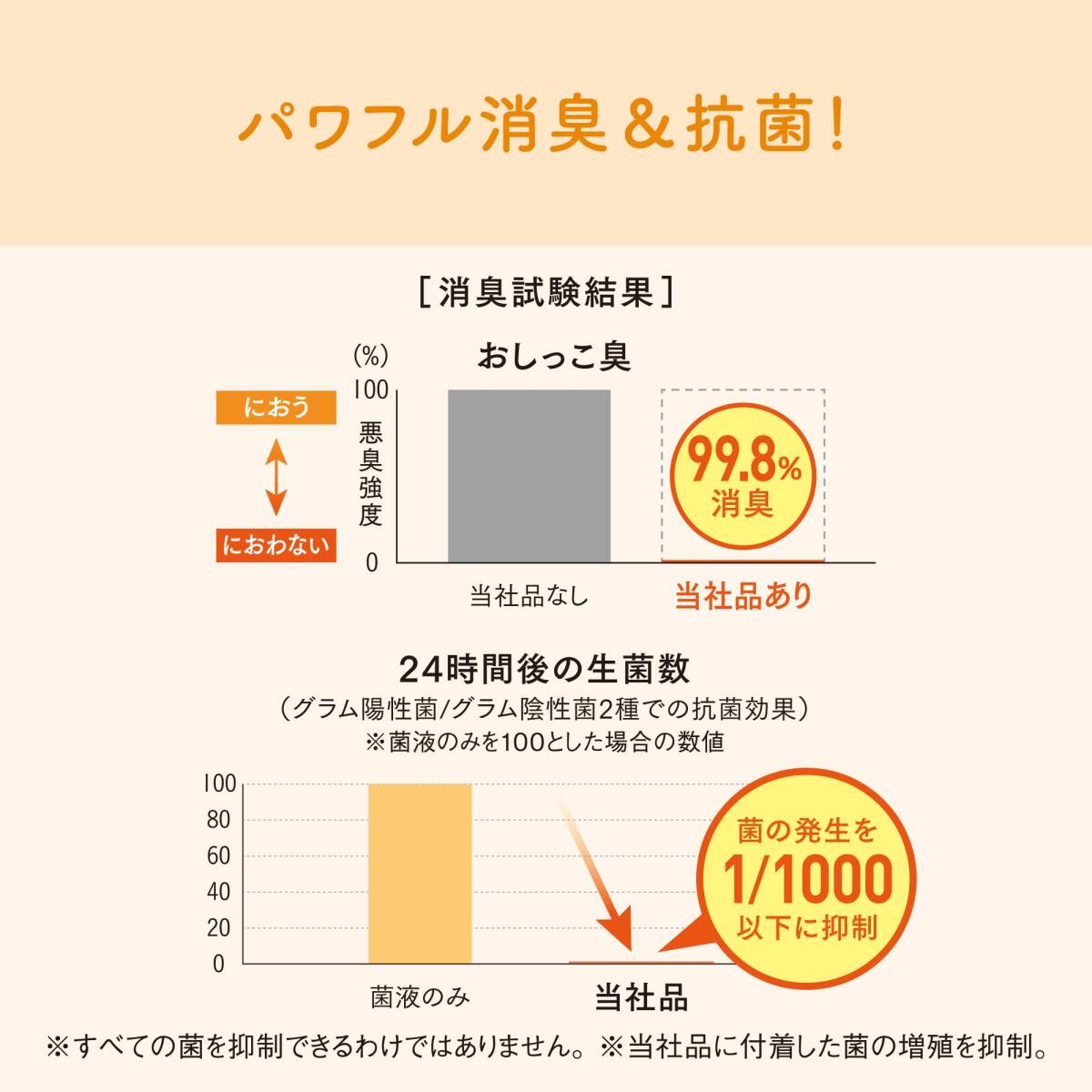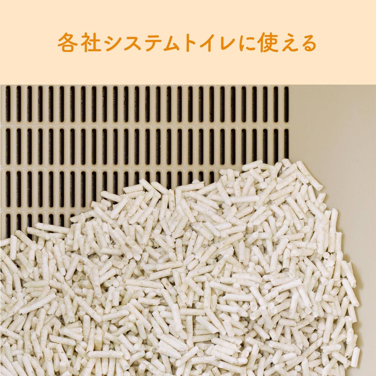 商品紹介 W消臭パワーでニオイを吸着&分解!●ゼオライトと銅イオンのW消臭パワーでニオイを吸着&分解。●抗菌効果が続いて1ヶ月交換不要。●砂の表面に残ったおしっこも素早く吸収、表面さらさら、足もと清潔。 使用方法 (1)トレーにシート等を敷いたシステムトイレ本体のスノコ部分に本品を2~3cmの厚さに敷いてください。(2)うんちや汚れた砂はスコップやティッシュ等で取り除いてください。(3)砂が減った分と同量の本品を補充してください。●1日に1回はうんちを取り除いてください。(愛猫1匹の場合)●常にトイレを清潔に保つために、1ヵ月に1回を目安にシステムトイレ本体内の砂をすべて取り除き、トイレ本体を洗浄してください。その後、トイレをよく乾かしてから新しい本品を入れてください。交換時期は飼育頭数やトイレの設置場所などの飼育環境により異なります。●砂が全体的に汚れてきたり、トレーに敷いたシートを交換してもニオイが気になる場合は、すべて新しい本品に交換してください。