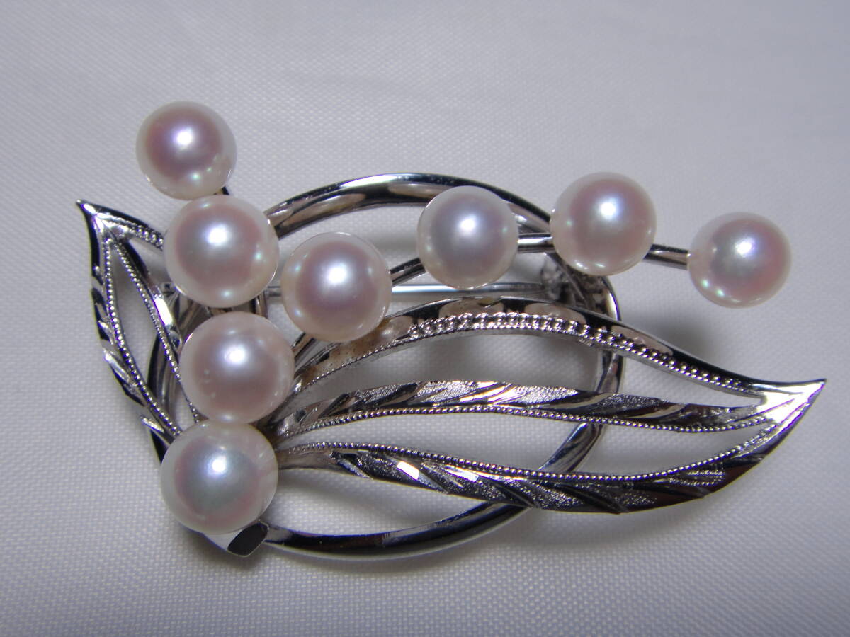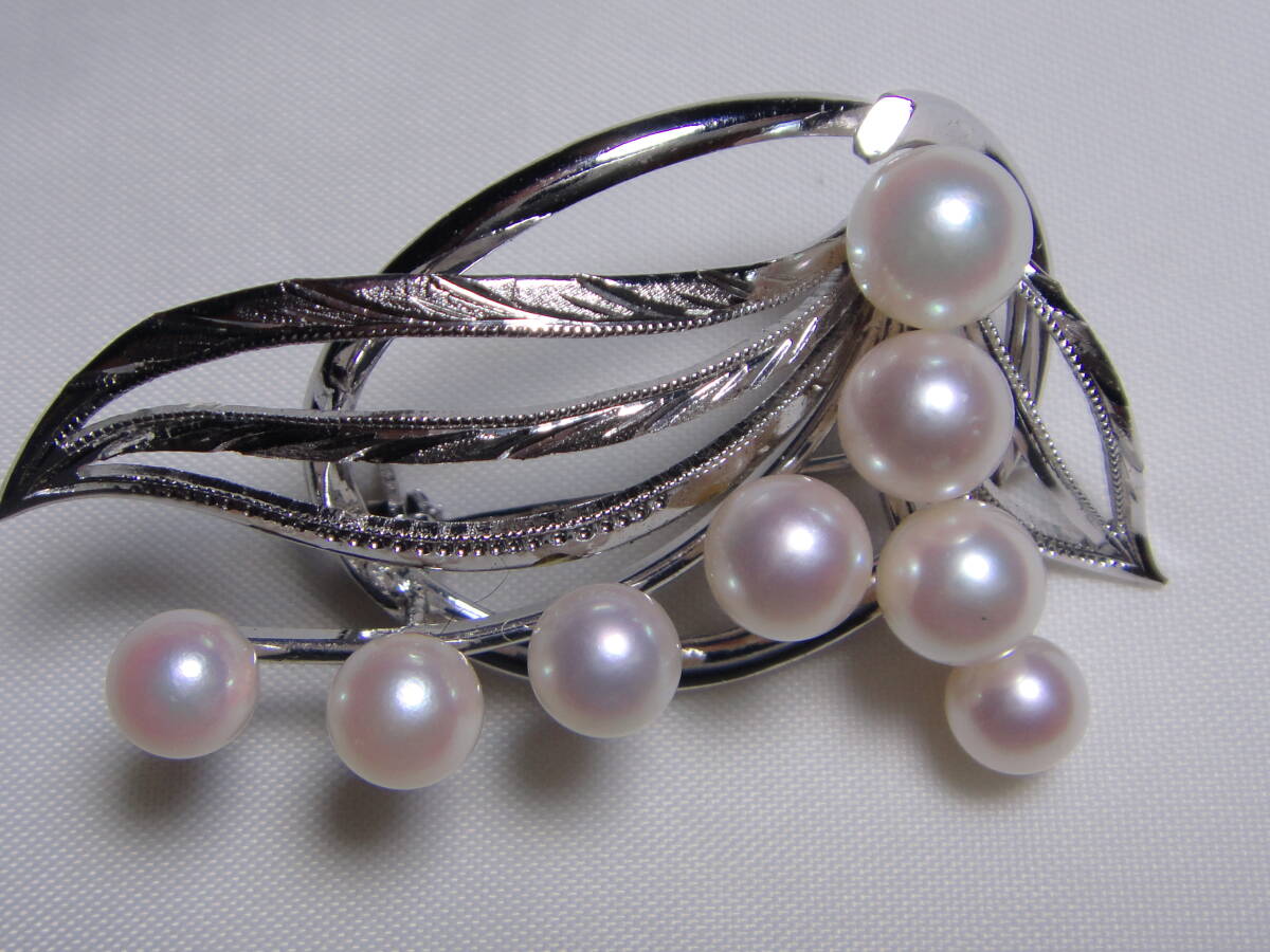 アコヤ真珠 本真珠 本パール ブローチ ツヤテリ玉 STERLING刻印 ヴィンテージ C452