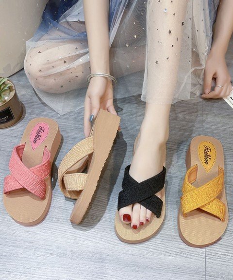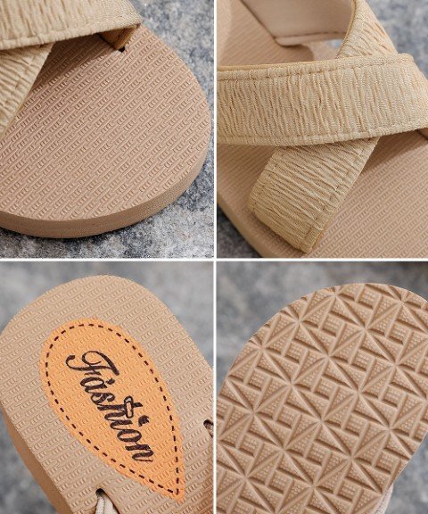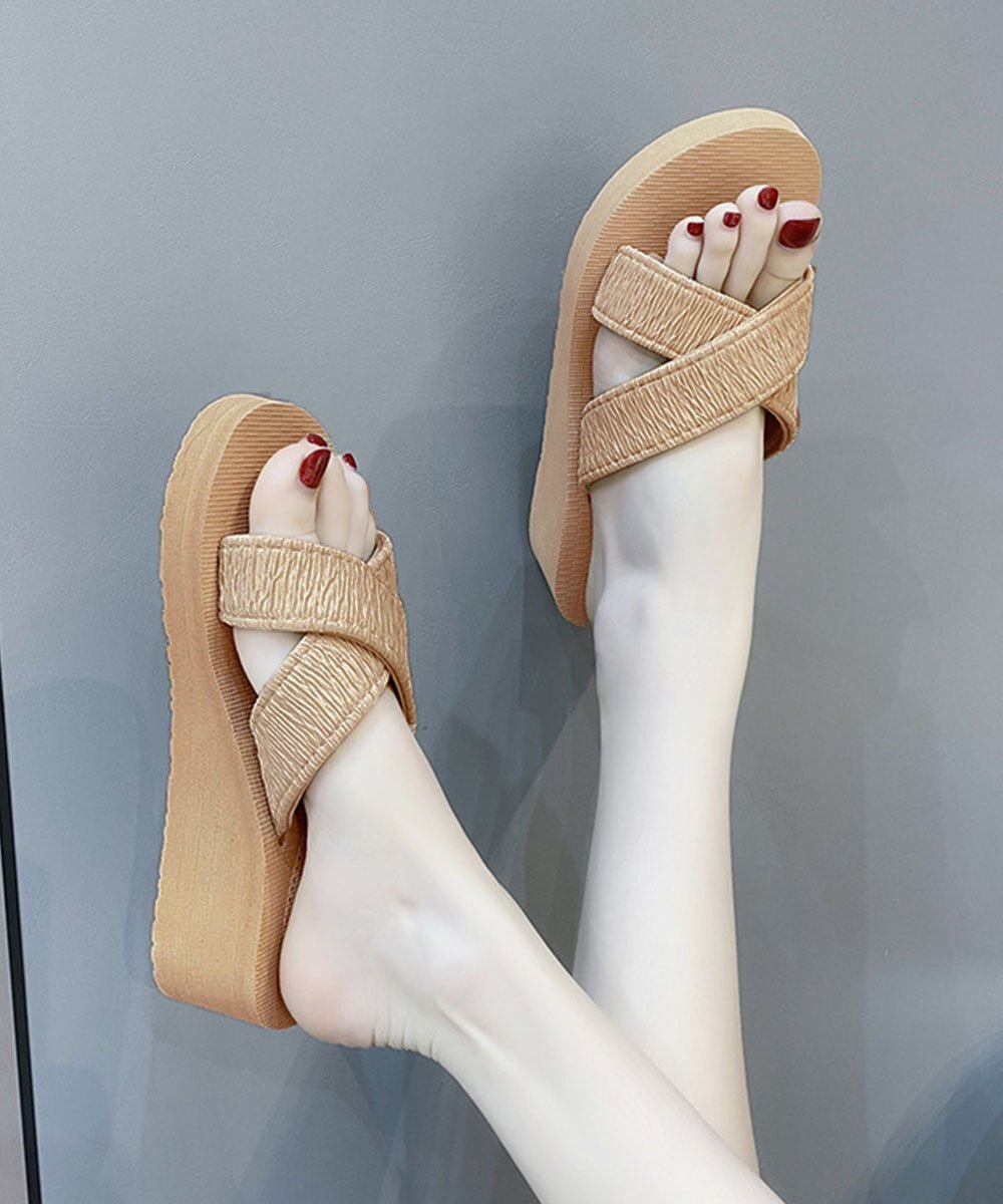 太めのクロスアッパーは安定感があり、長時間の着用も安心の厚底サンダル