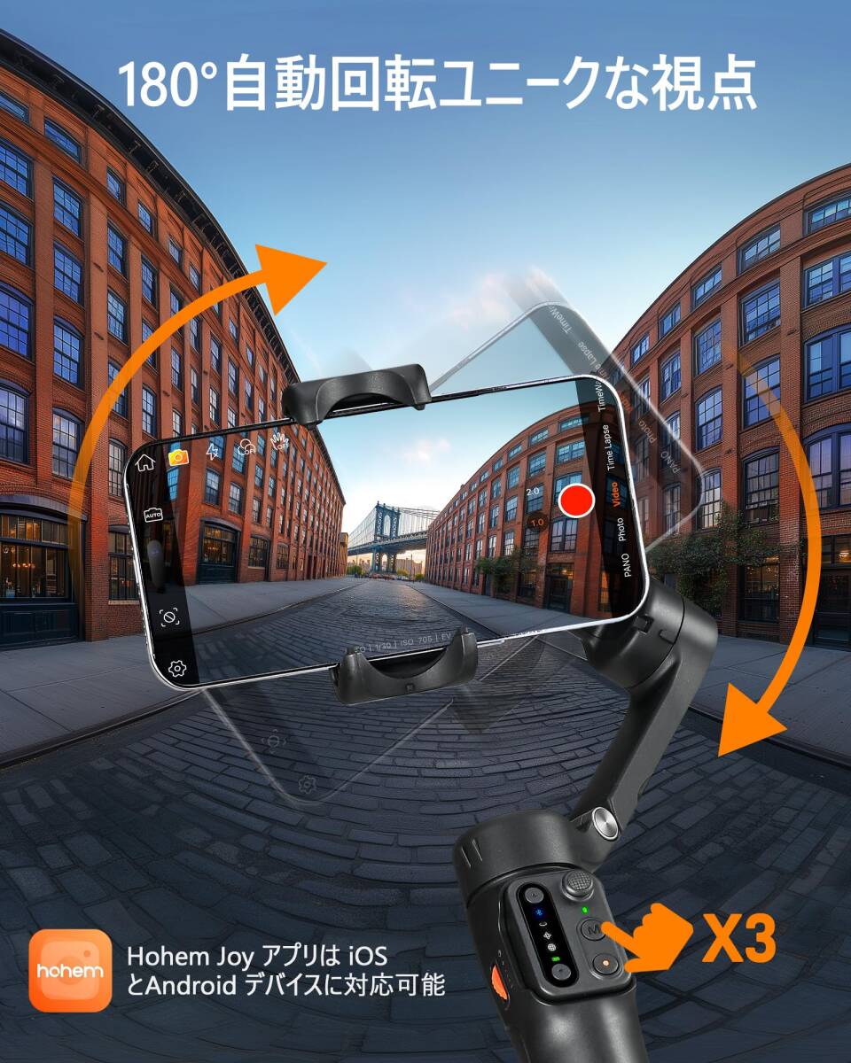 【自動追跡&ジェスチャーコントロール】専用アプリ Hohem Joy で顔の追跡に制限がなく、常に被写体を中心に追跡して撮影することができます。また、hohem Joyアプリで、特定のジェスチャを認識でき、遠くから手の動きだけで操作して写真を撮り始めましょう。hohem X3 SE を使えば、よりプロフェッショナルなビデオ撮影が簡単になります。