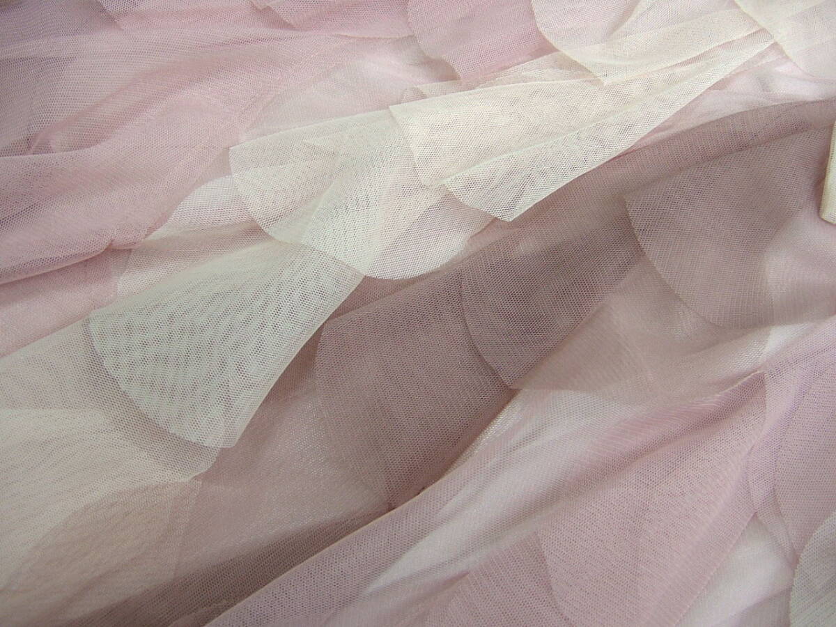 ■フリルが重なるように施されたチュール素材のフォーマルドレス