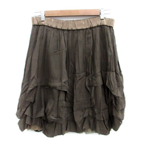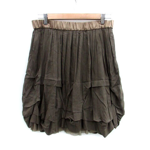 アズノウアズ as know as フレアスカート ティアードスカート ひざ丈 チュール 切替 カーキ 茶色 ブラウン /HO7 レディース