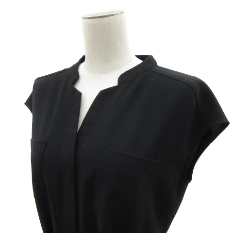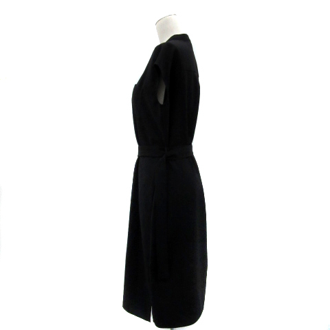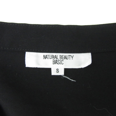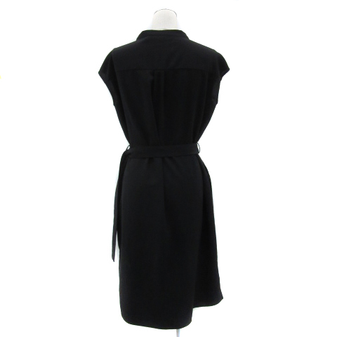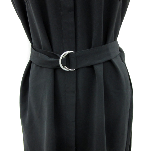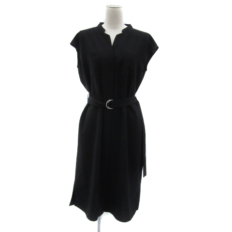 ナチュラルビューティーベーシック ワンピース ミモレ丈 ノースリーブ スリットネック ウエストベルト付き S 黒 ブラック レディース
