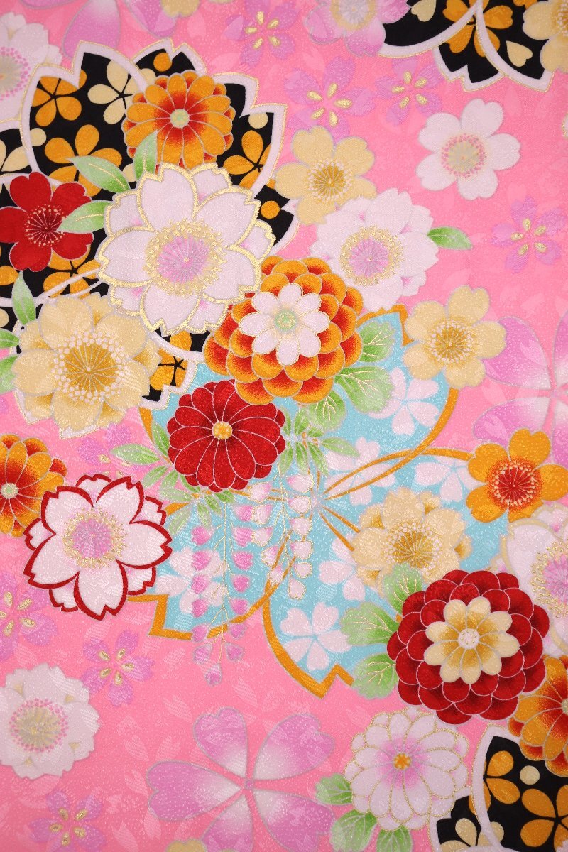 ピンク色系に染め上げた、可愛らしい七五三 女児(7歳用)着物です。