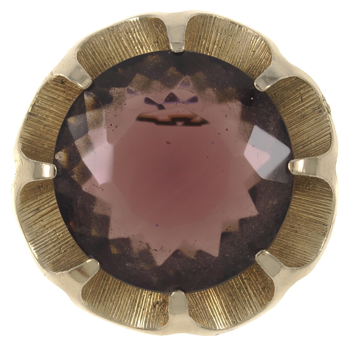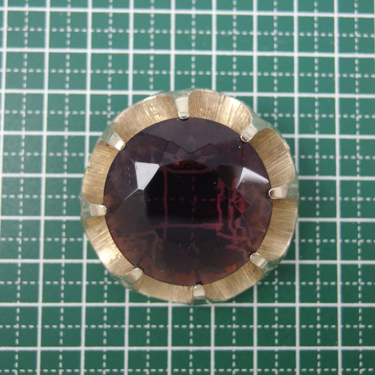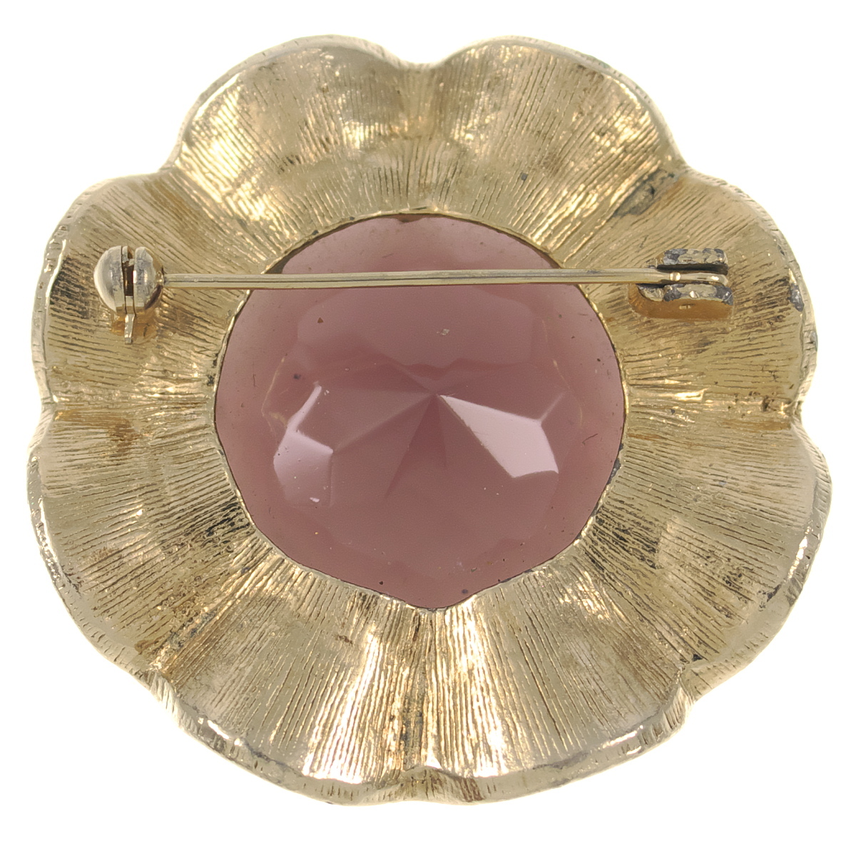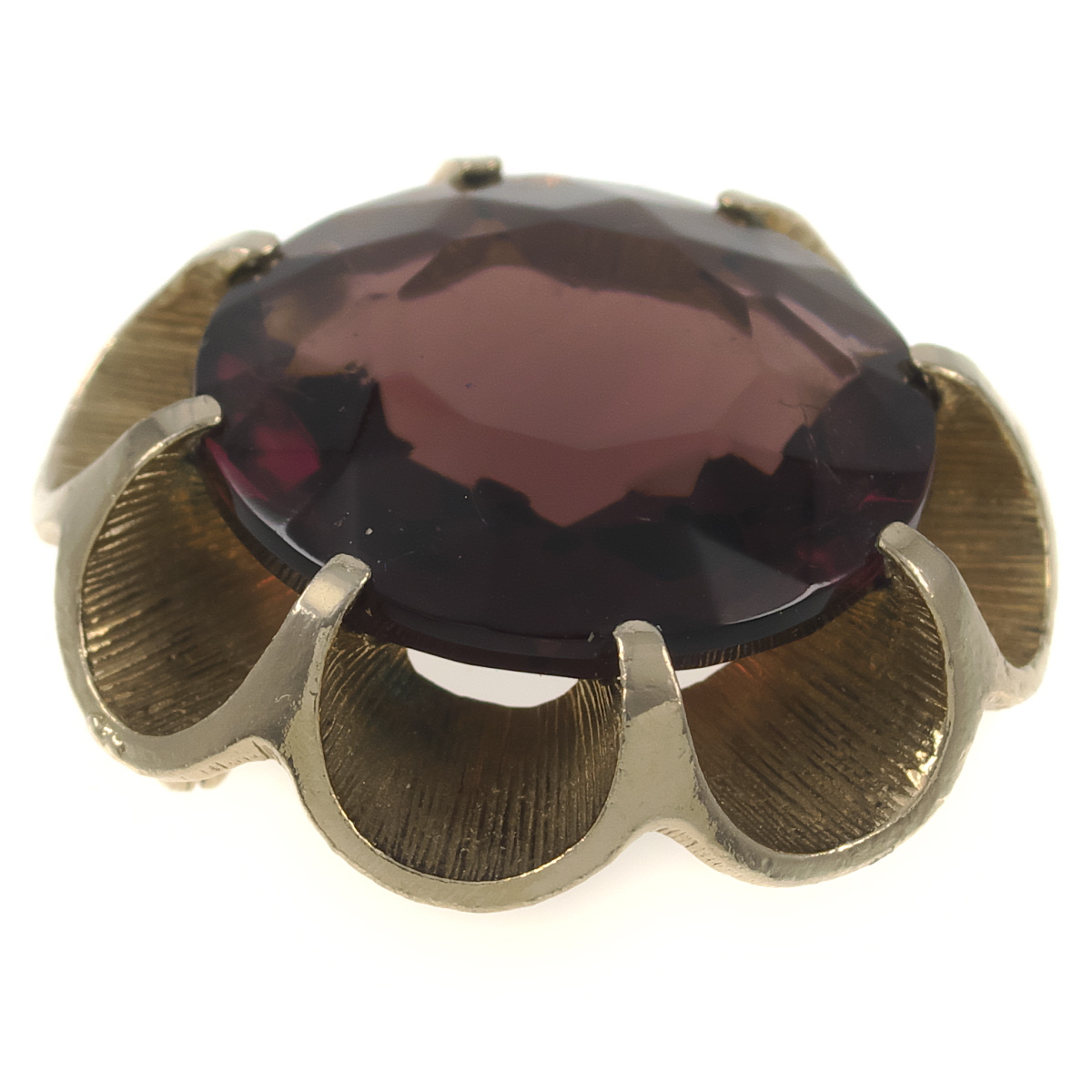 UK4113◆ 大粒 パープル系ガラスストーン 色石 フラワーモチーフ 花 英国 イギリス ◆ ヴィンテージブローチ ◆