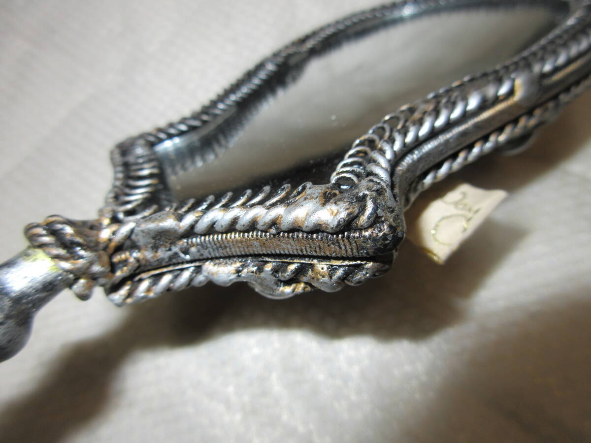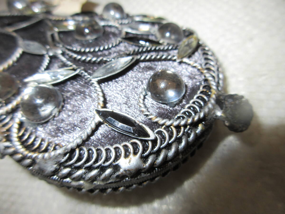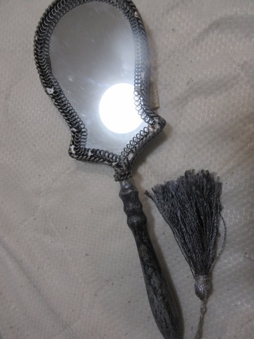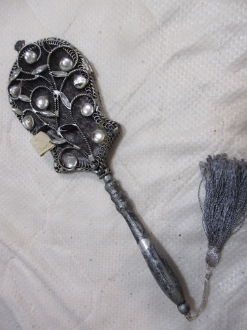 手鏡です。年代や素座不明。ベロアにストーン付き実物ははとてもかわいいです。