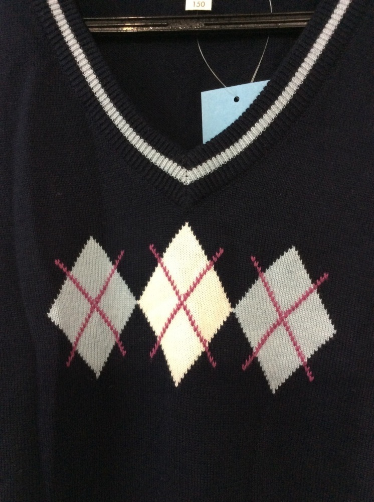 管理番号:43^125503 エル ネイビー×アーガイル柄ニットベスト 表示サイズ:150 実寸(参考)