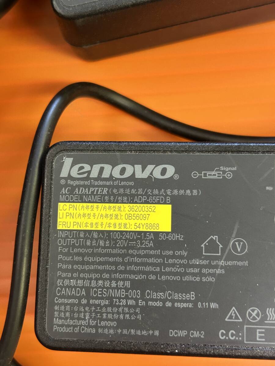 Lenovo 純正 ACアダプタ 2個セット ADP-65FD B 20V 3.25A 角型(16