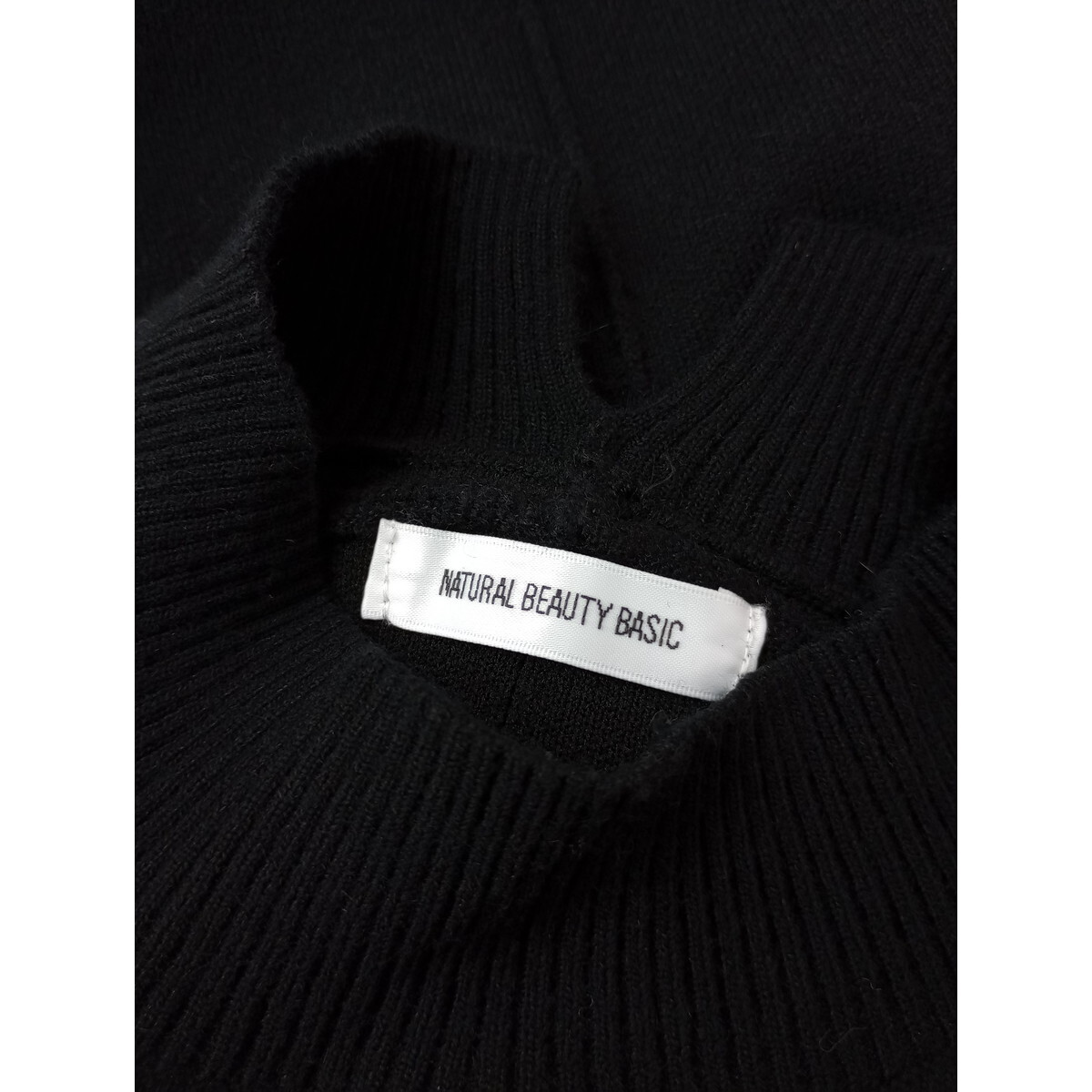 23年製 NATURAL BEAUTY BASIC「シンプル&おしゃれに着こなせる♪」ウール 毛 混 ハイネック ニット ロングワンピース M 黒(33M+5296)