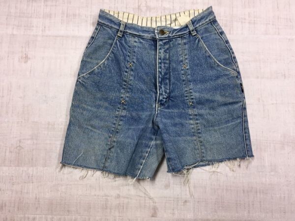 half オールド レトロ 切りっぱなし アメカジ ショート ハーフ デニムパンツ ジーンズ ボトムス レディース ジップフライ 青 です。