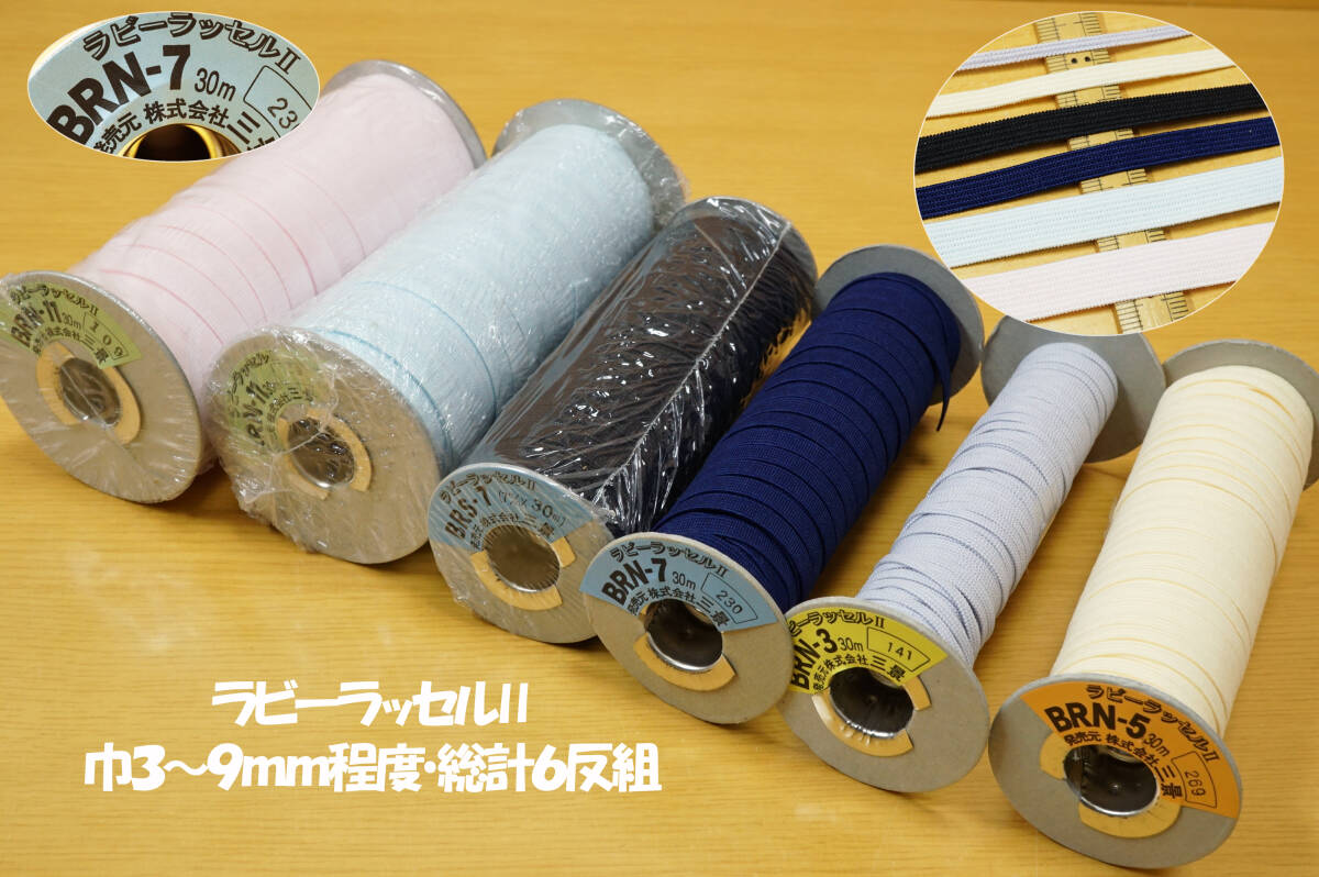 新品未使用品と使用感有の「ラビーラッセルⅡ」平ゴム、6反組での出品でございます。