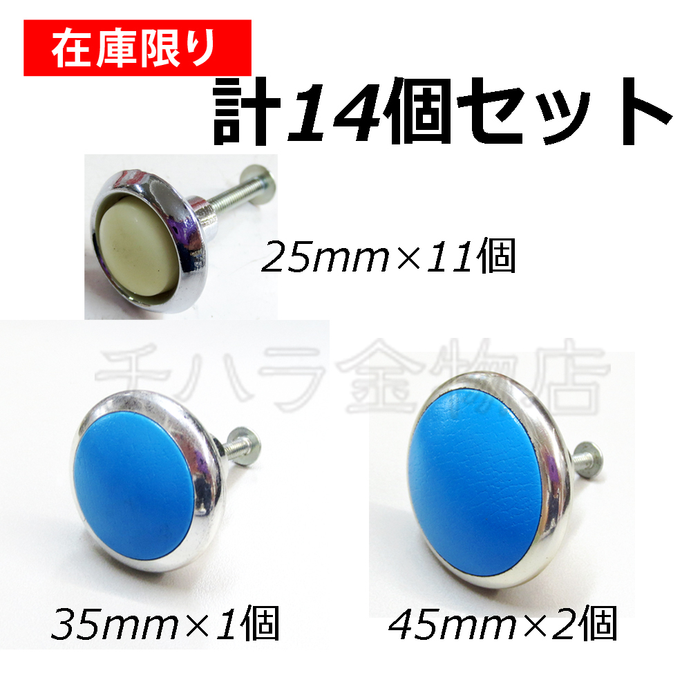 長期在庫品 丸ツマミ 25/35/45mm アイボリー/ブルー アンティーク 計14個セット
