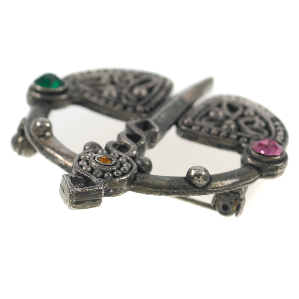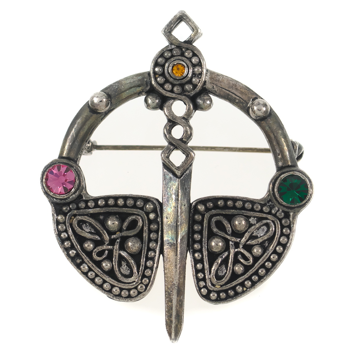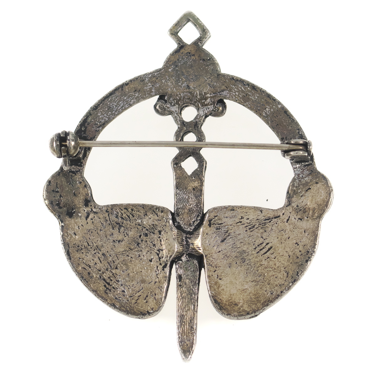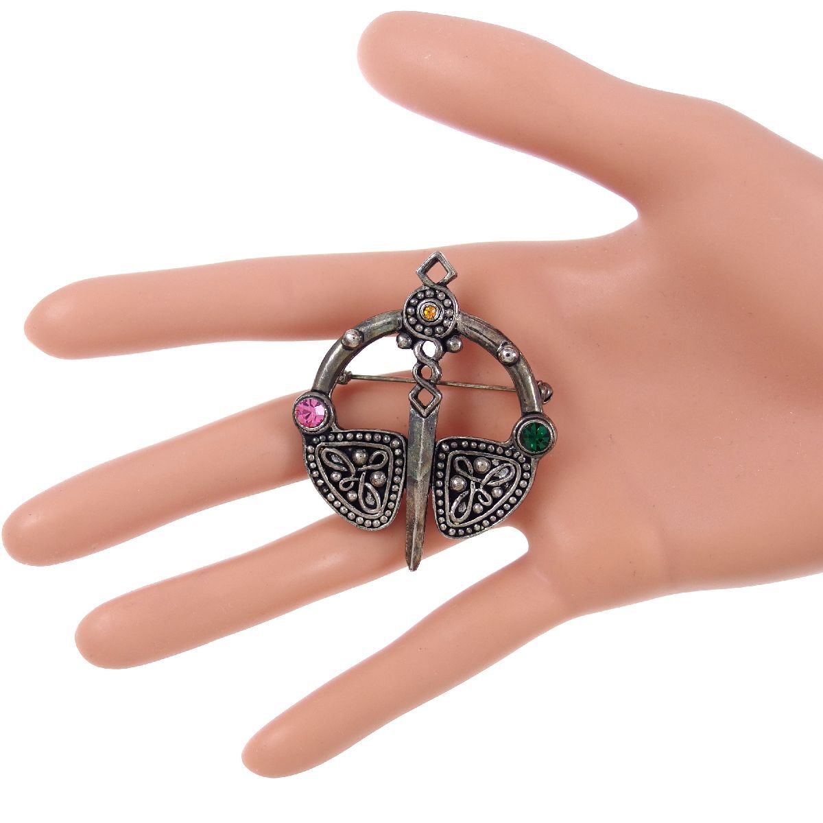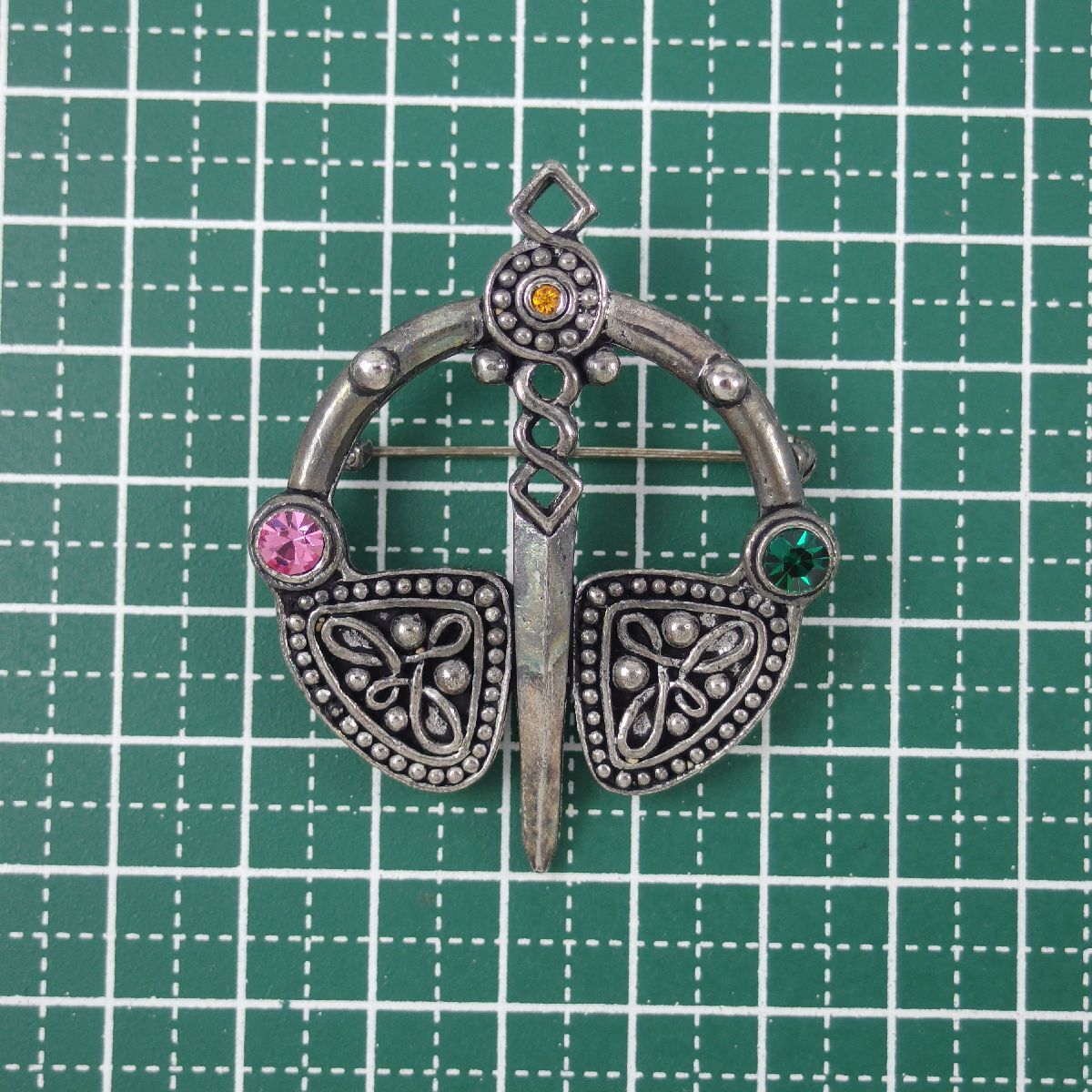 UK4121◆ ソード&シールドモチーフ 剣 盾 彫刻模様 ラインストーン ケルト イギリス 英国 ◆ ヴィンテージブローチ ◆