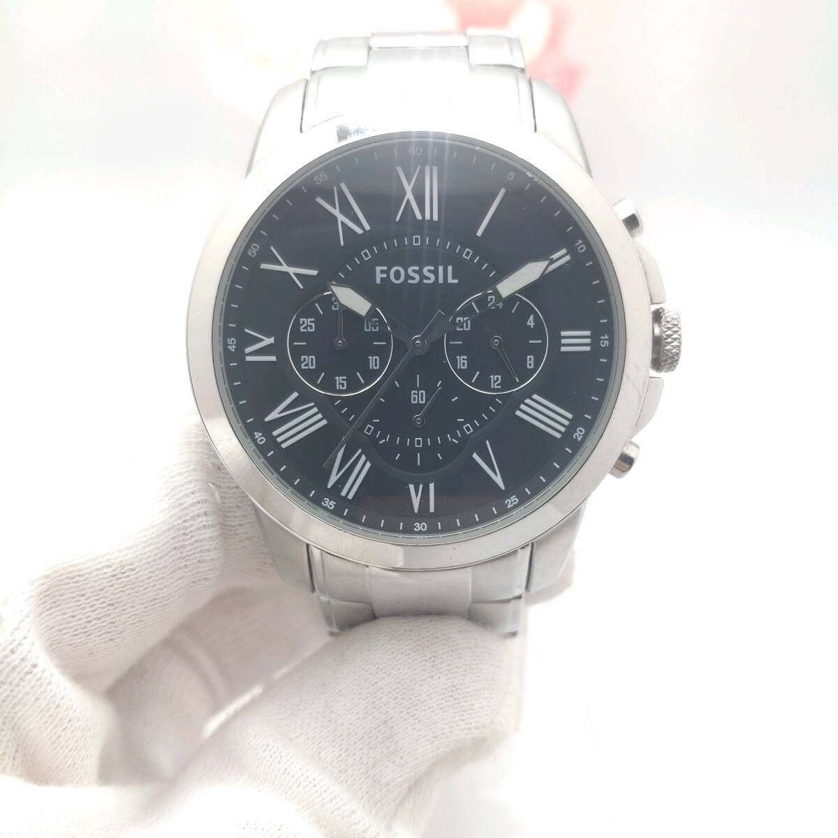 《稼働品》 FOSSIL★フォッシル★クロノグラフ★クォーツ 腕時計★メンズ★シルバー×ブラックの★管理 686f