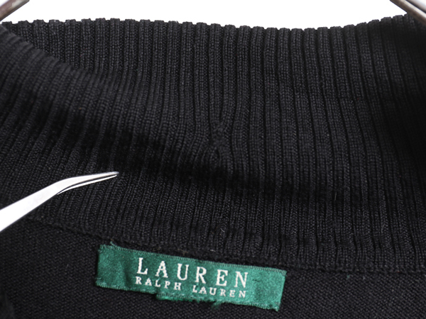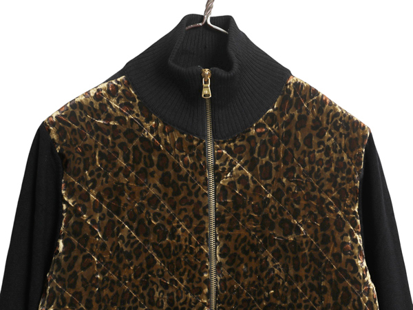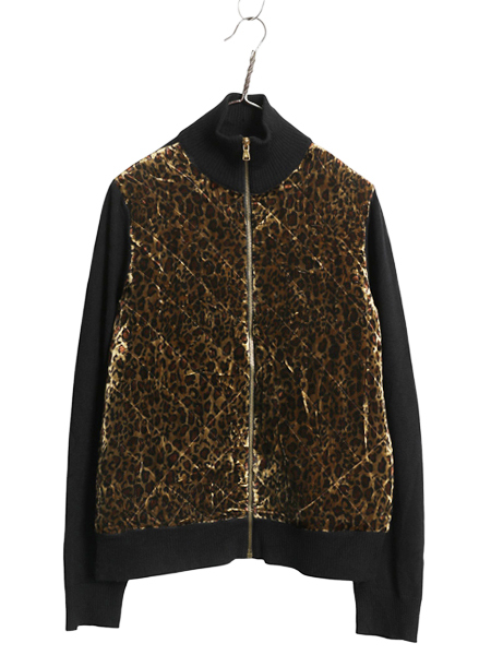 商品名 | ローレン ラルフローレン フルジップ ヒョウ柄 切替 ニット セーター ジャケット レディース L 程 ウール レーヨン シルク ベロア ブラック |