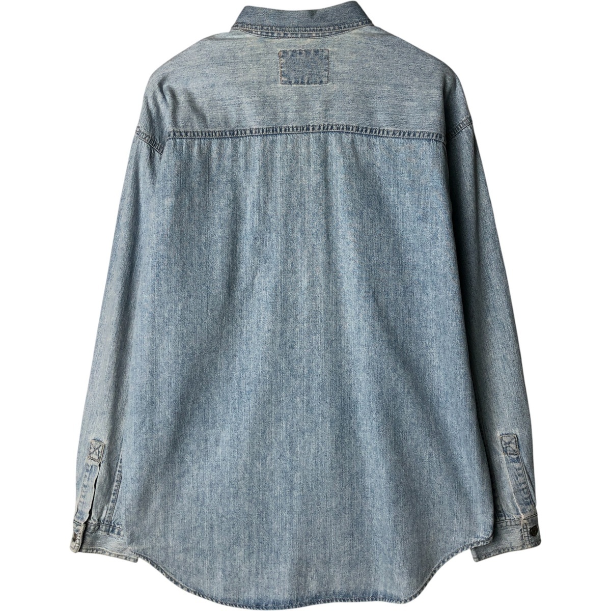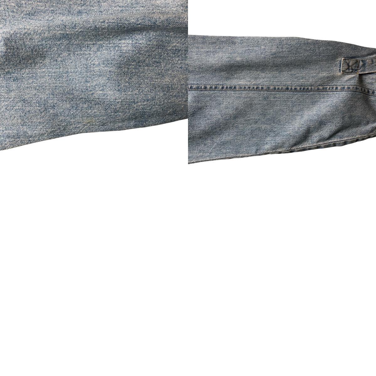 | 着用感: メンズXL 表記サイズ: 不明 着丈: 82.5cm 身幅: 61.5cm 肩幅: 56.5cm 袖丈: 62cm ![]() | ![]() ランク:C USEDデニムですので使用感、擦れ、色落ちなどございますが、まだまだご愛用していただけます。 古着という事をご理解の上ご注文よろしくお願いします。 【状態追記】 ●前、両肘・両袖・右裾に汚れ ●後、両袖・右前腕肘近くに汚れ ●後、両袖に擦れ ●襟ぐり内側・両袖内側に汚れ |