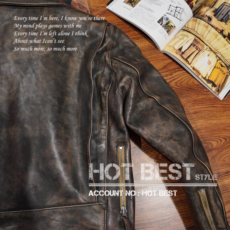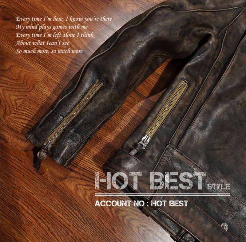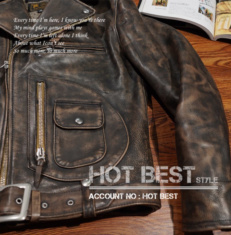 1.4mm カウハイド 30'sスタイル Dポケット ダブルライダース ヴィンテージ加工 レザージャケット トスカーナ イタリアンレザー 牛革 Y1308/3XL