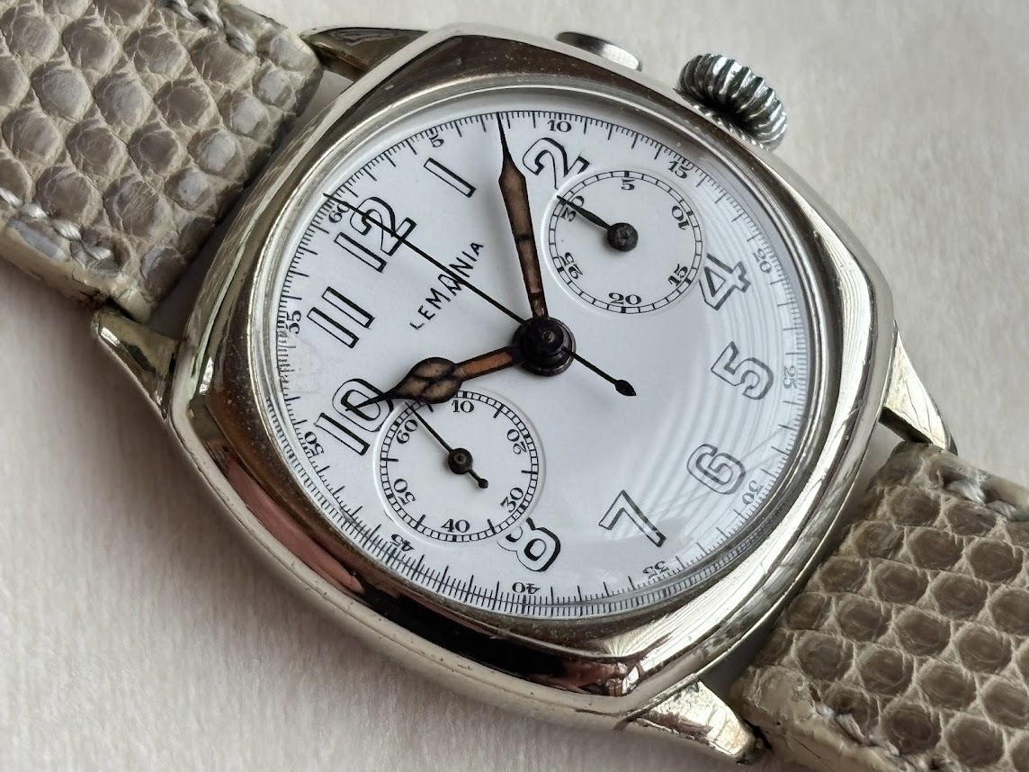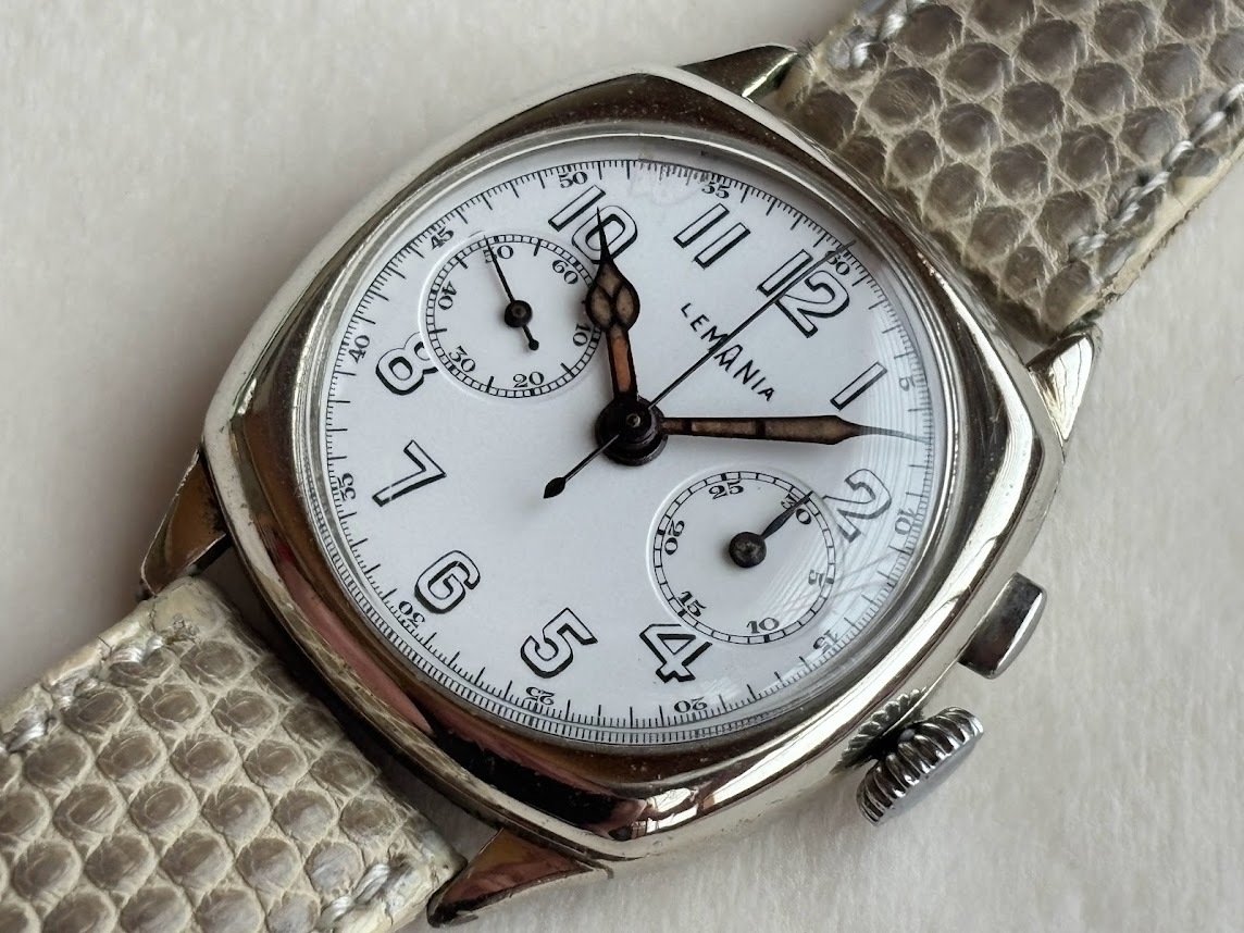 1930年代と思われる    LEMANIA     ワンプッシュ   クロノグラフ 、 アンティークとしてとても雰囲気のある貴重なものです。