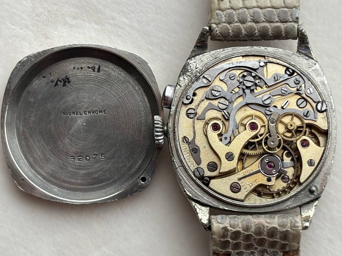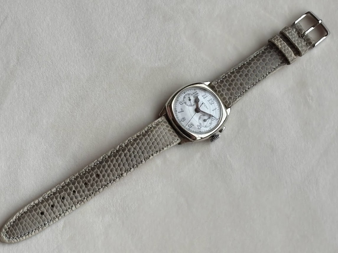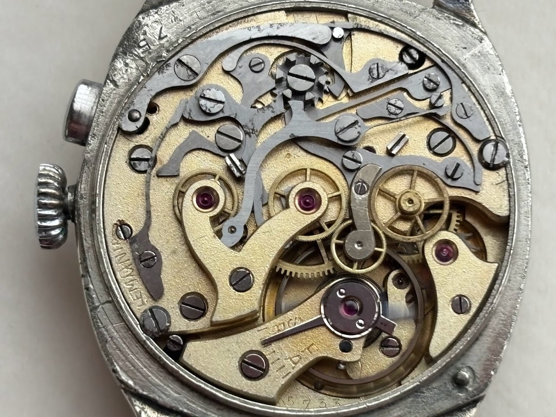 レマニア製のCalibre 13CH はいわゆるワンプッシュクロノ(プッシュボタンはリューズより離れて独立しているタイプ)と呼ばれていて1932~1943年頃に製造されていたもので、大変希少なものです。