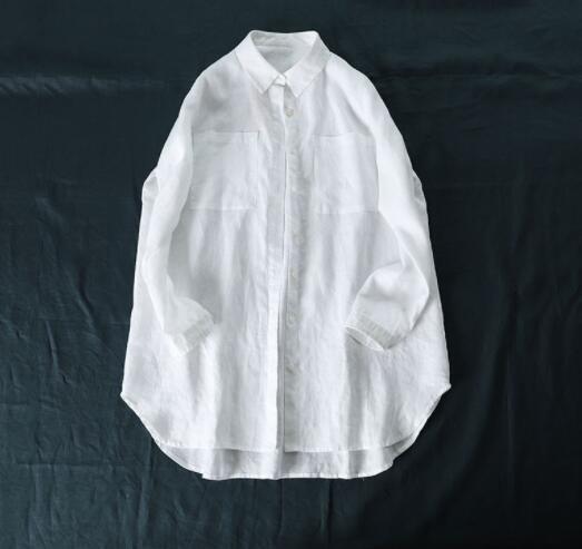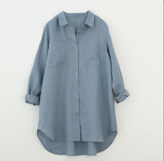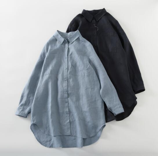 大人気上着 麻100% リネン 通気性抜群 ゆったりとした ブラウス ワイシャツ 大人可愛 オシャレ チュニックネイビー