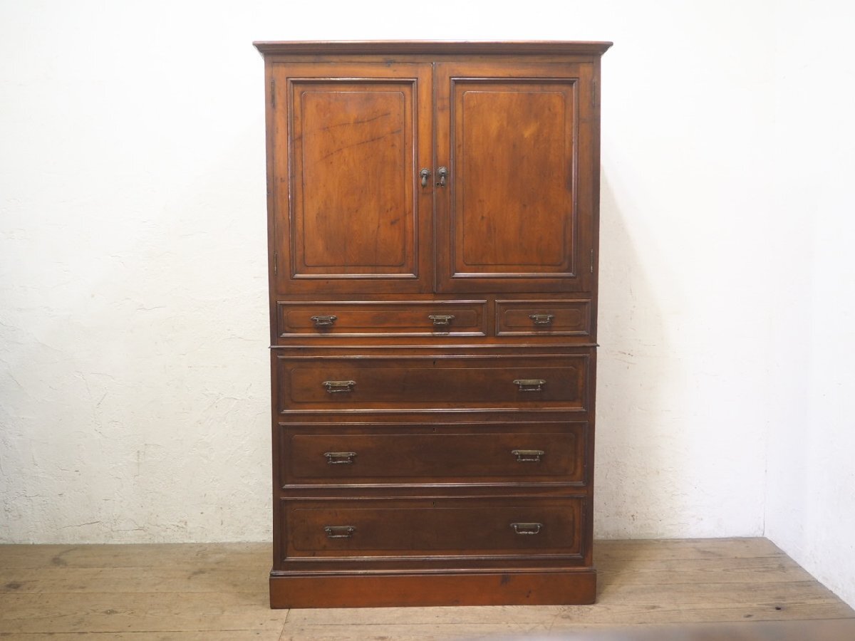 タ荷I0846◆①H172,5cm×W106cm◆アンティーク◆重厚な造りの大きい木製収納棚◆洋館 飾り棚 タンス チェスト 大正ロマン レトロV(ヤE)松