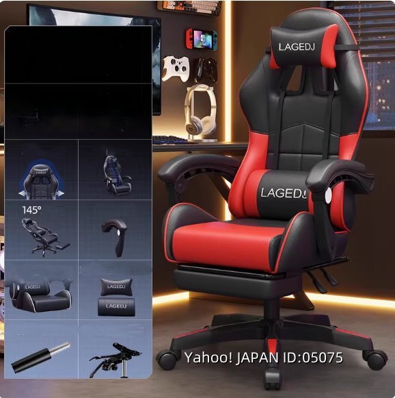 ゲームチェアコンピュータチェア家庭用リクライニング機能付き、長時間座っても快適、高さ調節可能、人体工学設計、アームレスト調整可能