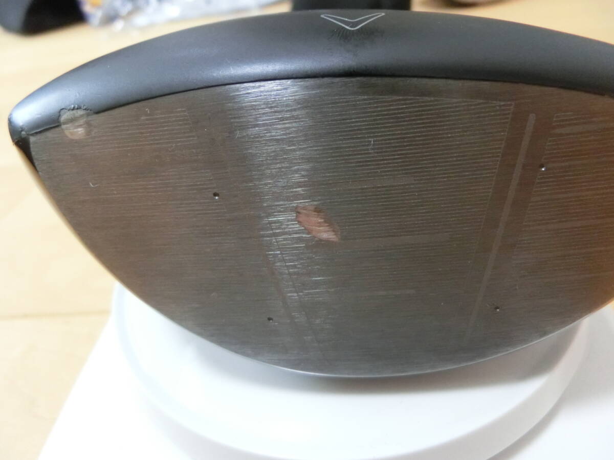 ・クラウン部 トゥ側及び、フェース面境目において塗装欠けを伴うキズ、及びタッチペンでの修正痕がございます。(写真9枚目)