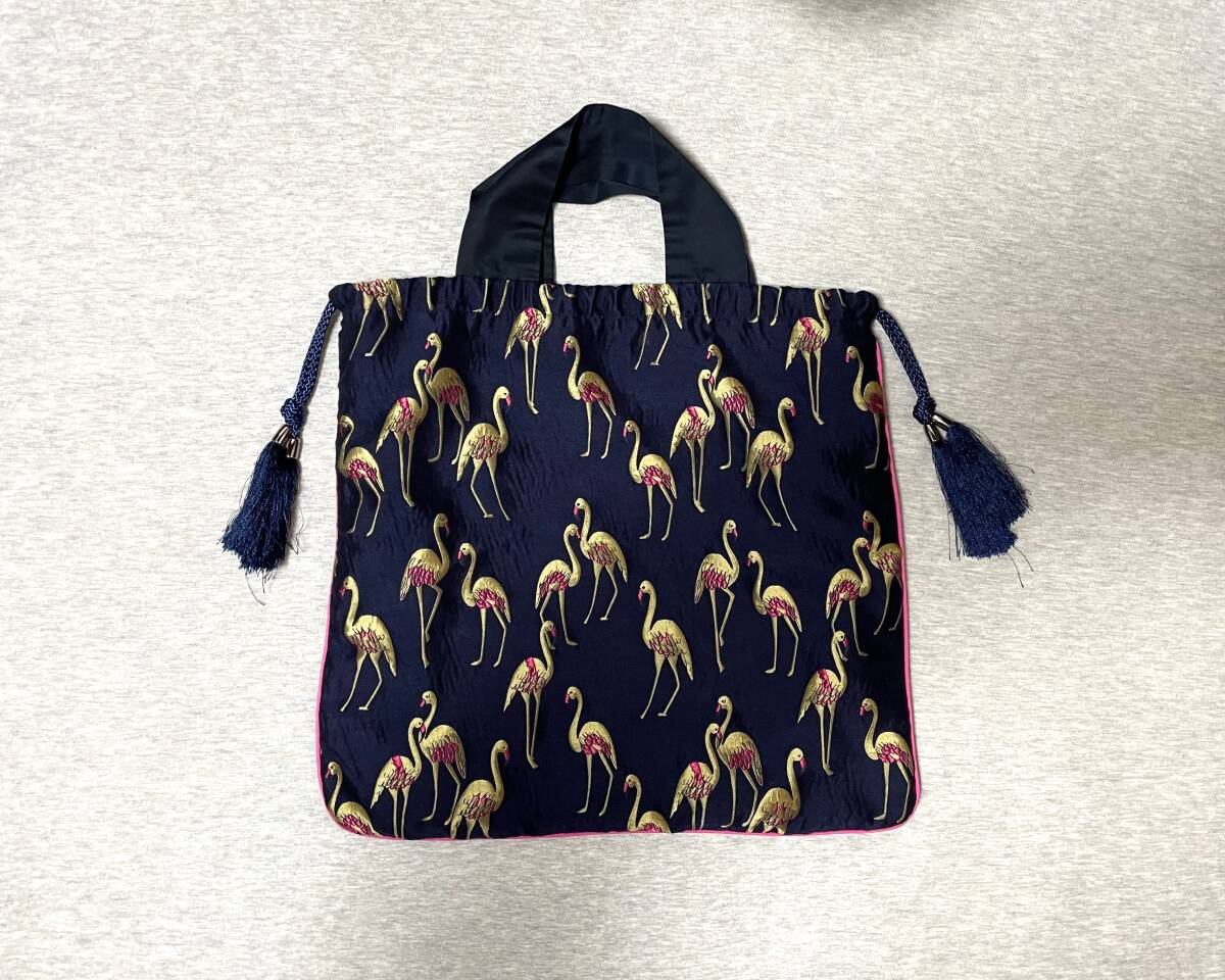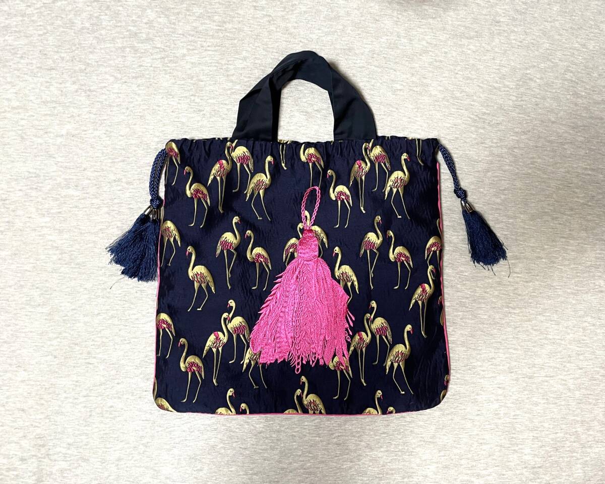 イアパピヨネ ear PAPILLONNER フラミンゴ柄 タッセル 刺繍入 巾着 トートバッグ 手提げ バッグ PAL