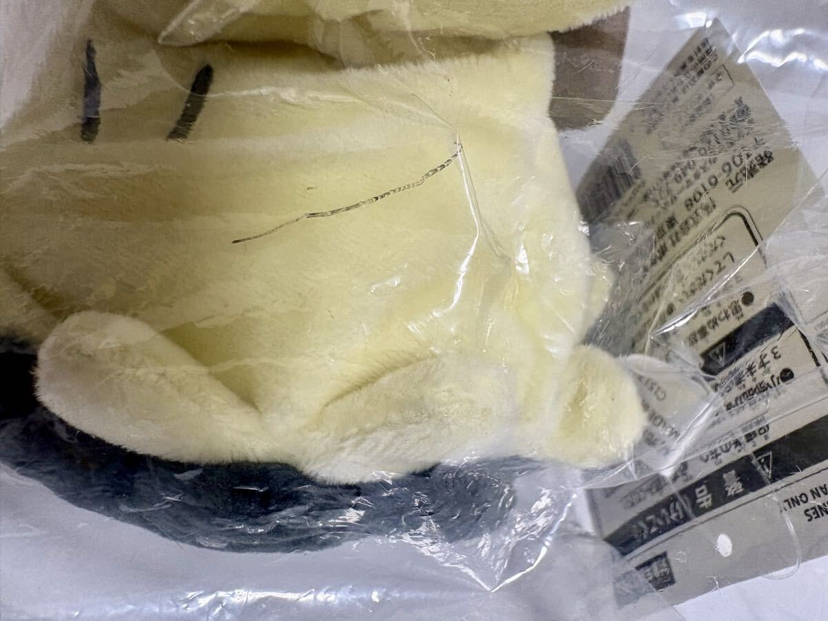包装袋に、何か接触したのかペンで書いたような黒い線の跡が付いています(写真2枚目)。