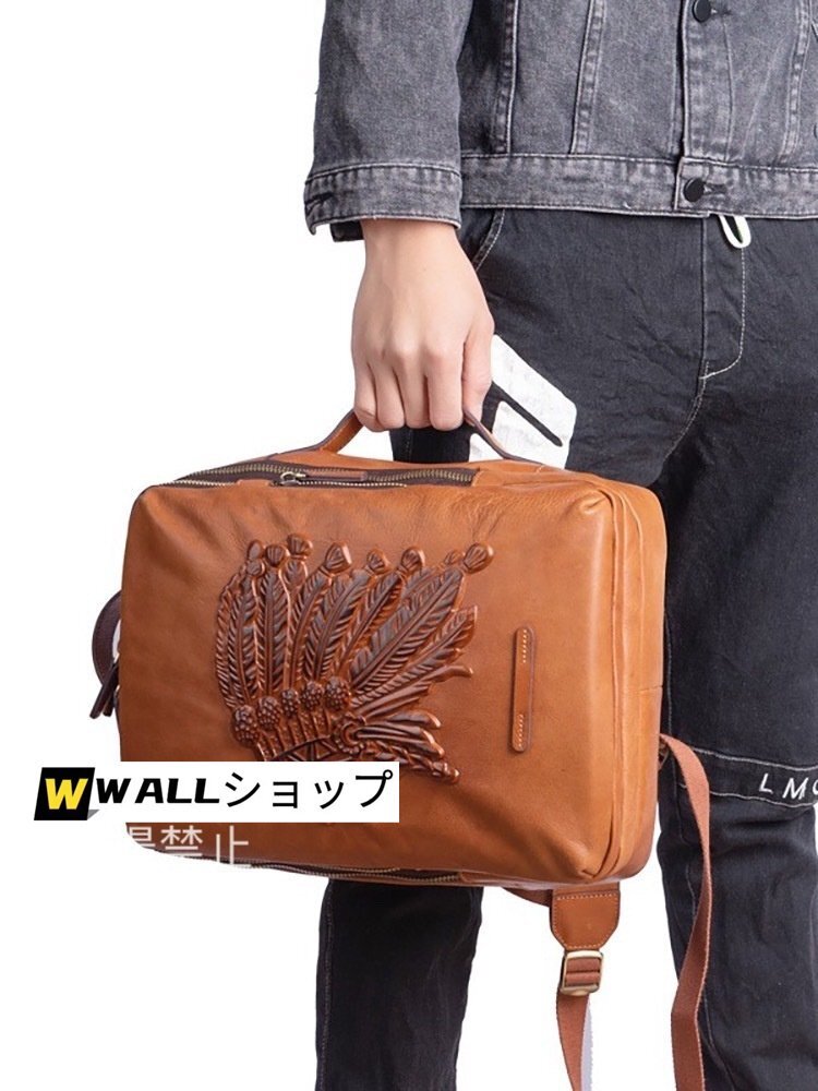 大人気メンズバッグ ビジネスバッグ 本革 デイバッグ ヌメ革 ビジネスリュック 職人手作り大容量 旅行 通勤 出張 おしゃれ