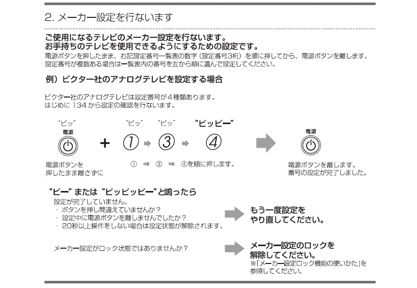 反応音(ピィ)有り 上記2ボタン以外、テレビ側反応あり